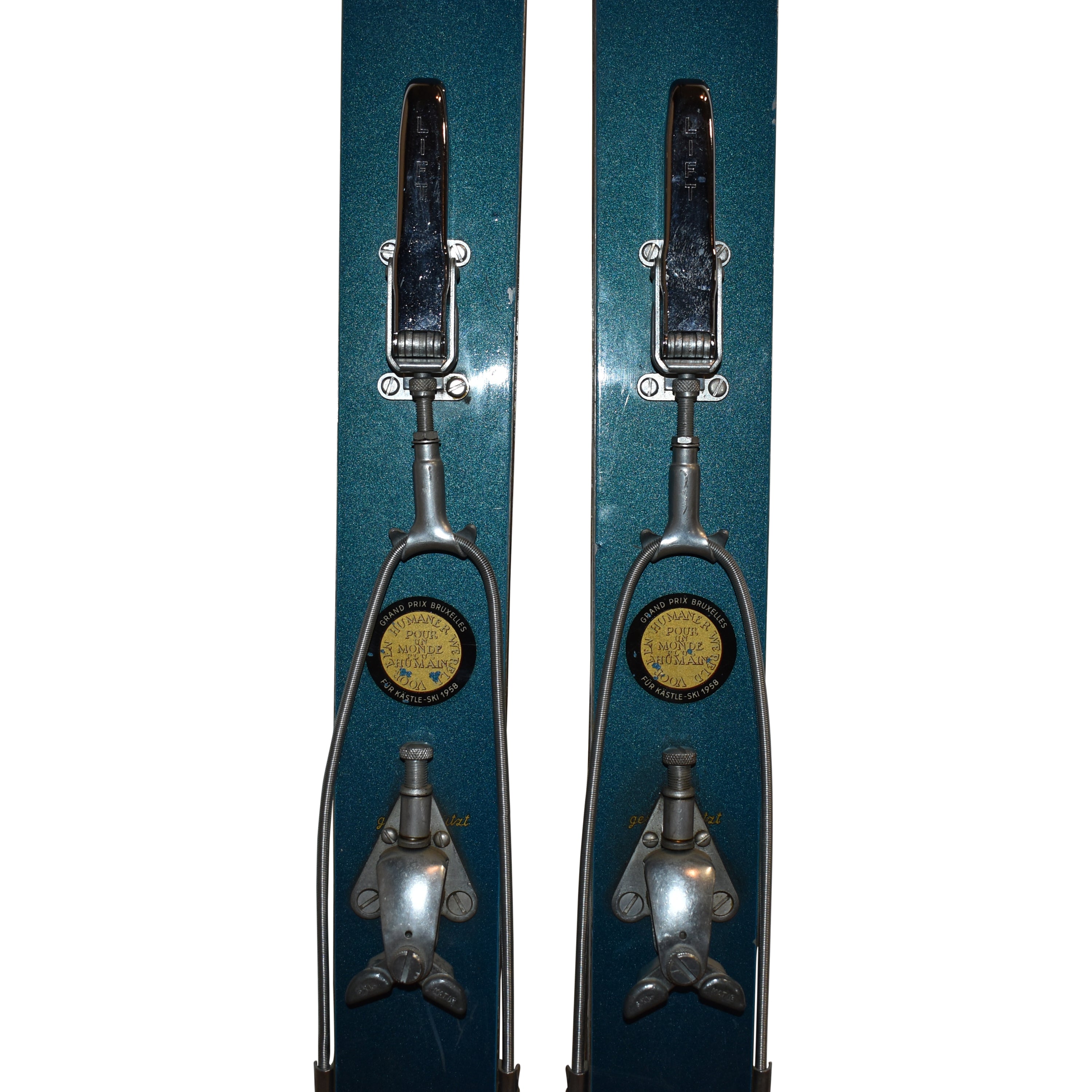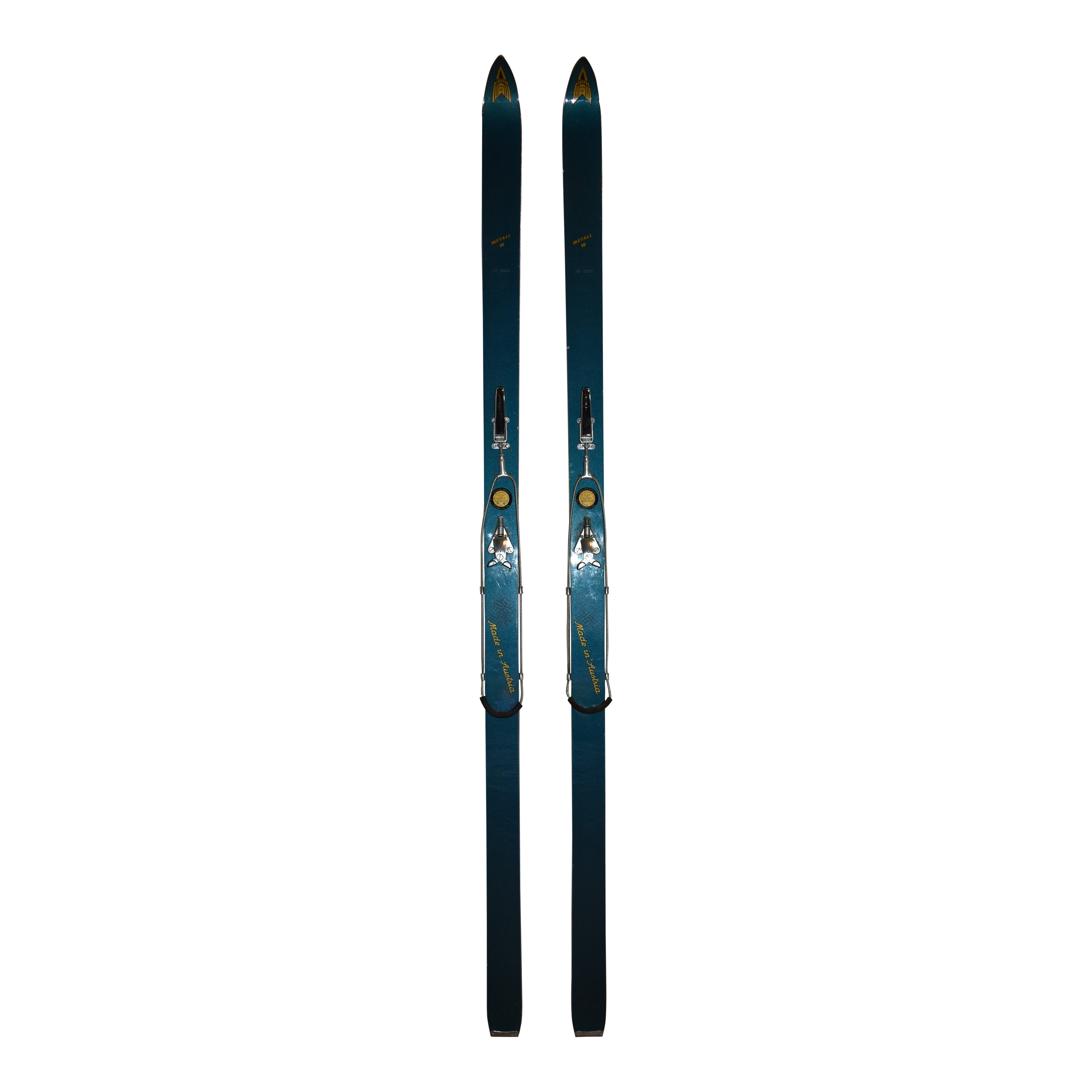These vintage Austrian Kastle skis once demanded respect on the slopes. Their striking blue finish paired with authentic cable bindings delivered the raw, uncompromising performance that defined alpine skiing's golden era. Once owned by Joe Coors himself, these skis carry genuine pedigree and character that modern equipment simply can't replicate. Built for skiers who crave authenticity and aren't afraid to push boundaries, they are a collector's piece with serious soul.