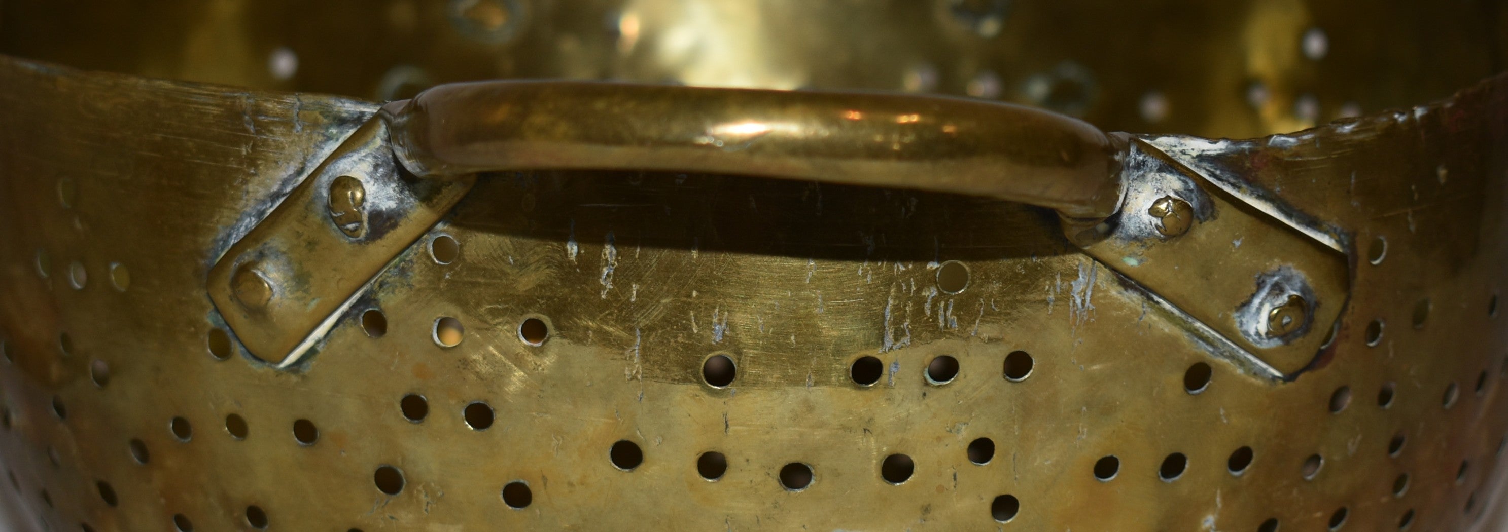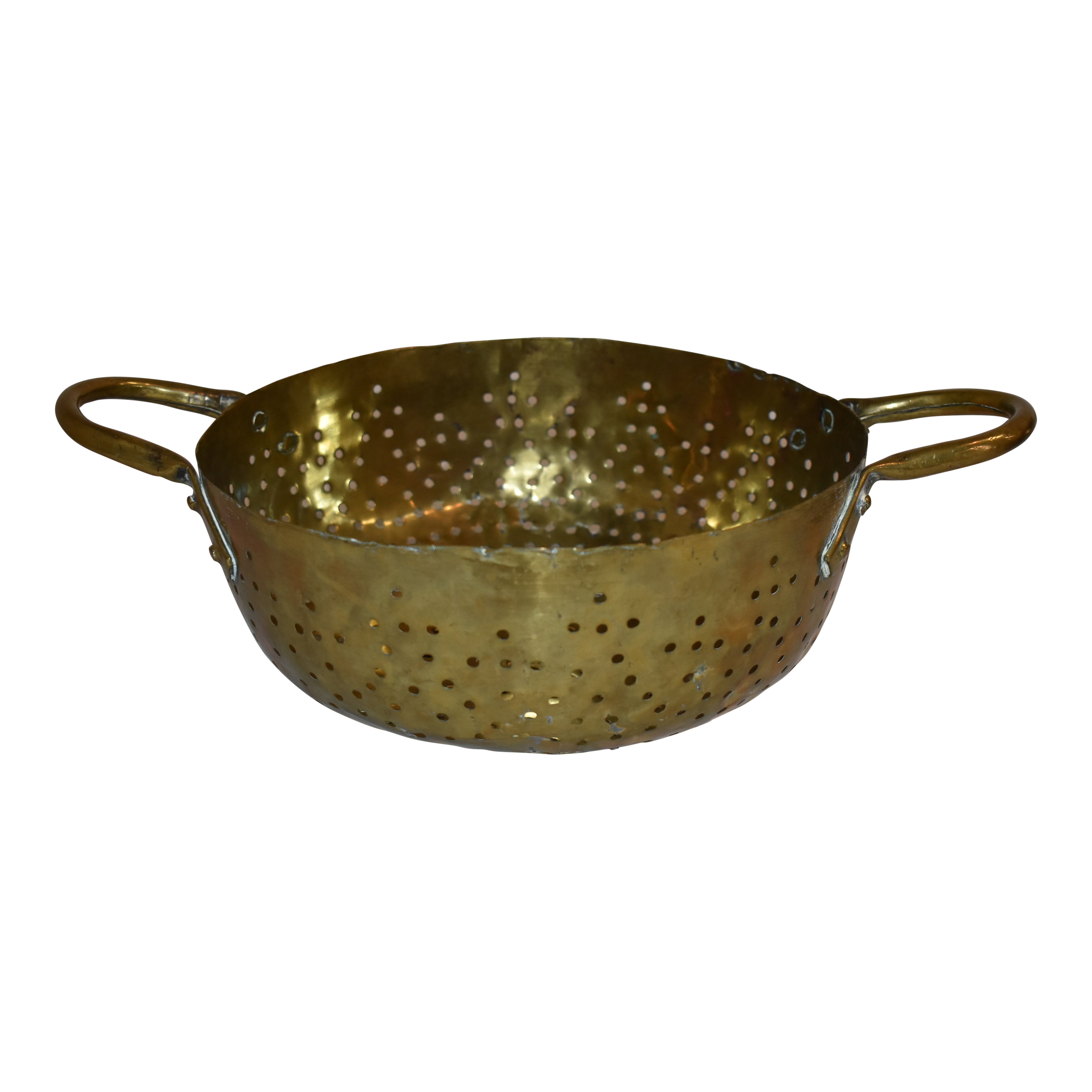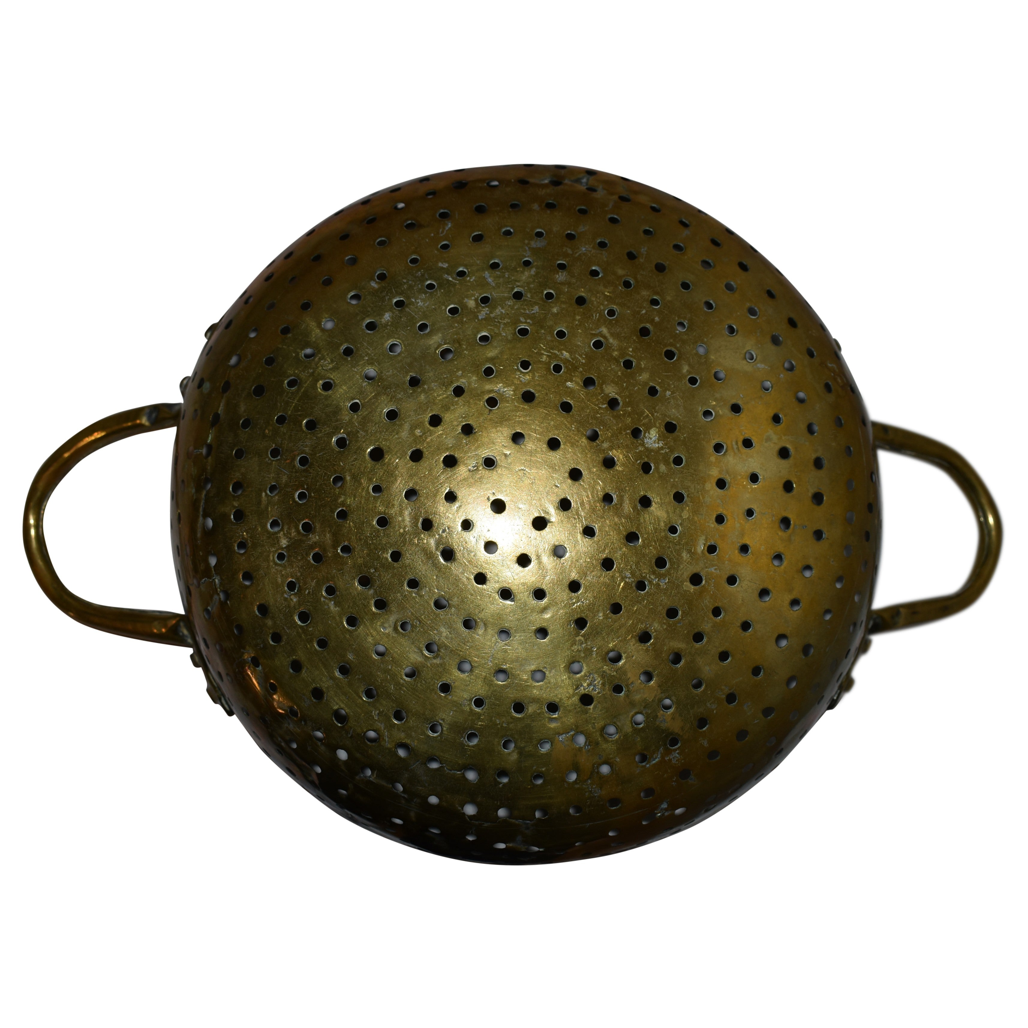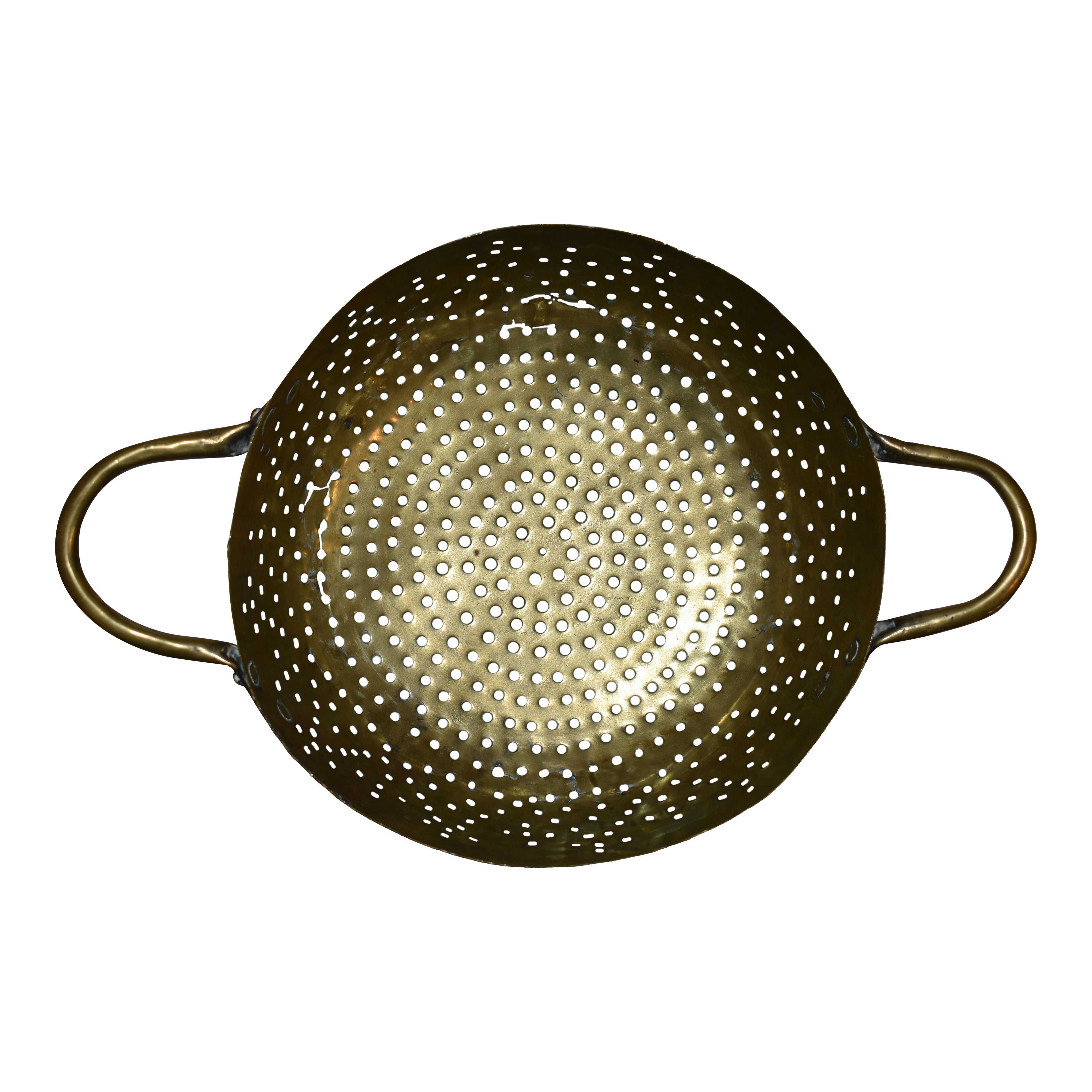 Crafted from brass, this vintage colander offers exceptional durability and a gleaming finish. Equipped with two handles, it provides secure grip and ease when draining or rinsing ingredients. Its classic design not only serves practical needs but also adds a touch of timeless elegance to your culinary workspace.
