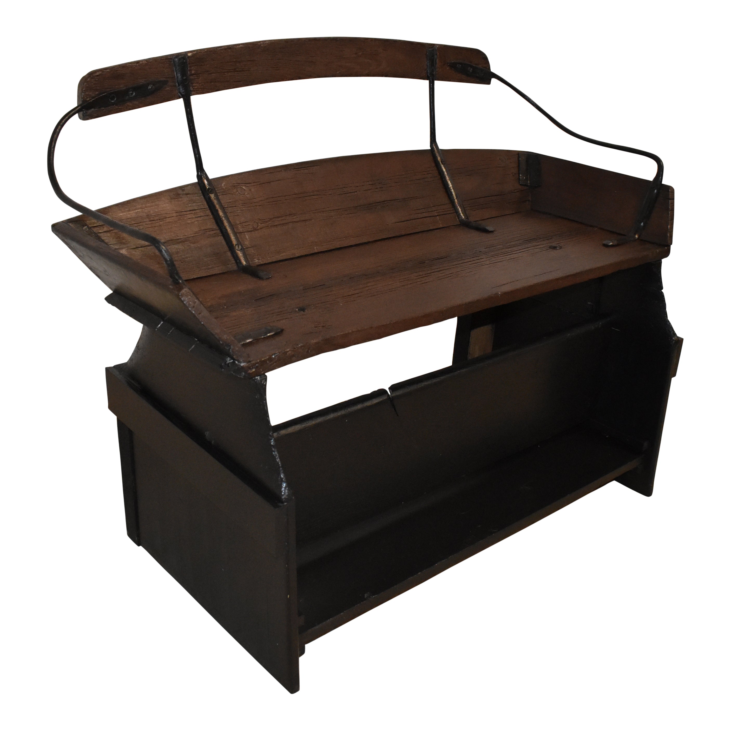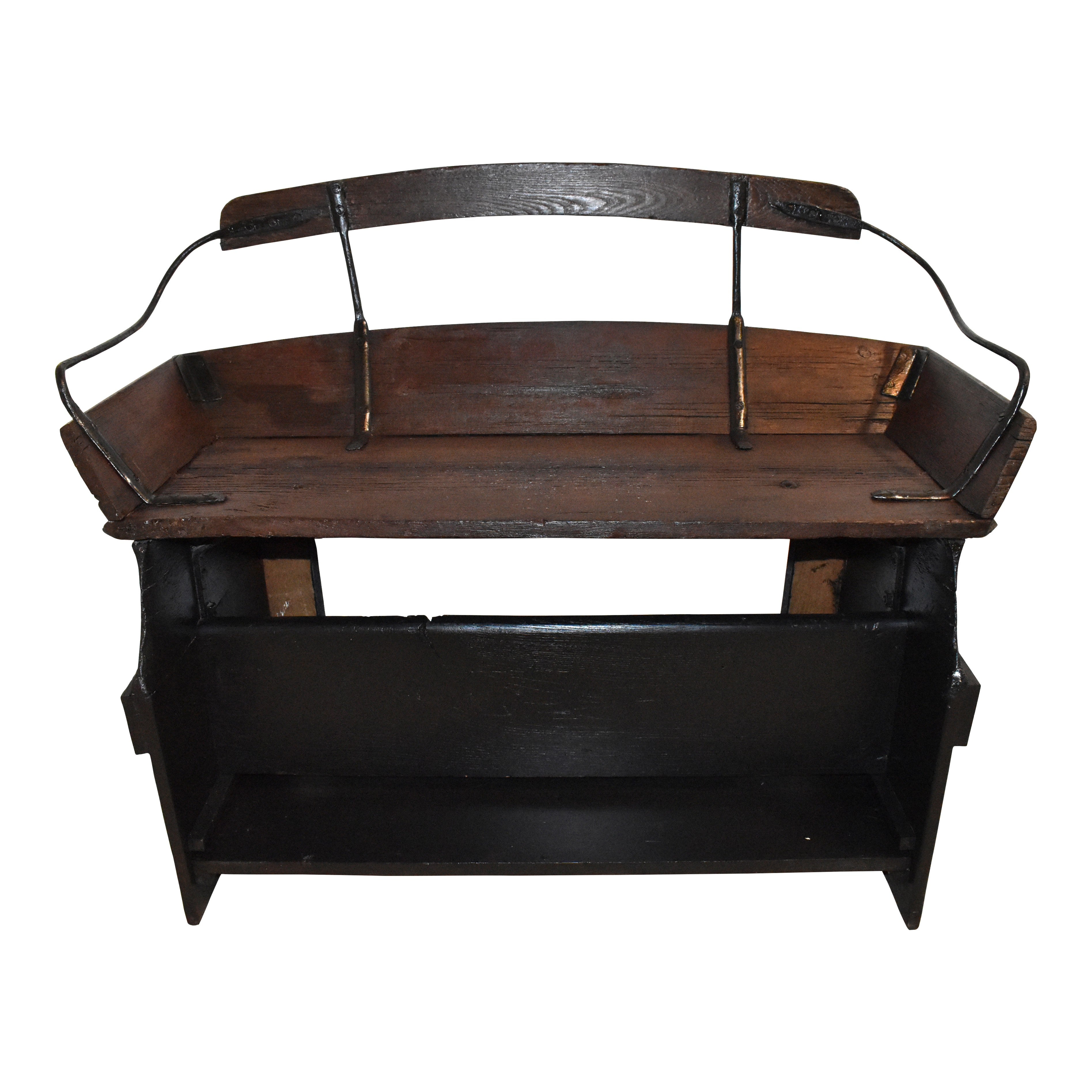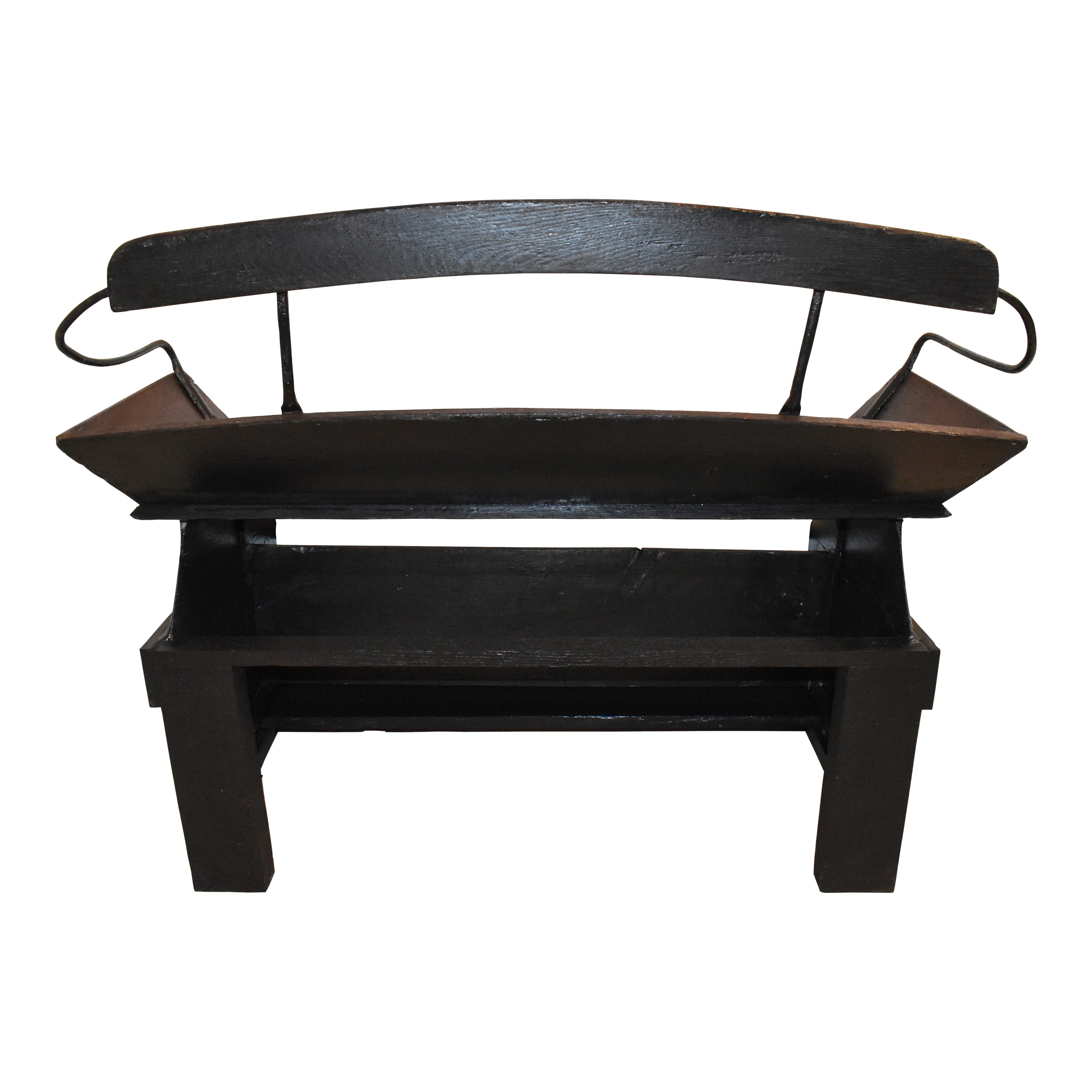 This authentic buckboard wagon bench seat combines rustic charm with practical durability. Featuring a reclaimed wagon seat and new wooden legs, this custom-made, repurposed piece showcases the craftsmanship of vintage transportation design. It serves as both functional seating and a distinctive conversation piece that celebrates American heritage and artisanal restoration work.