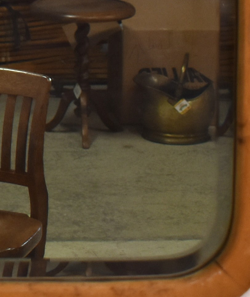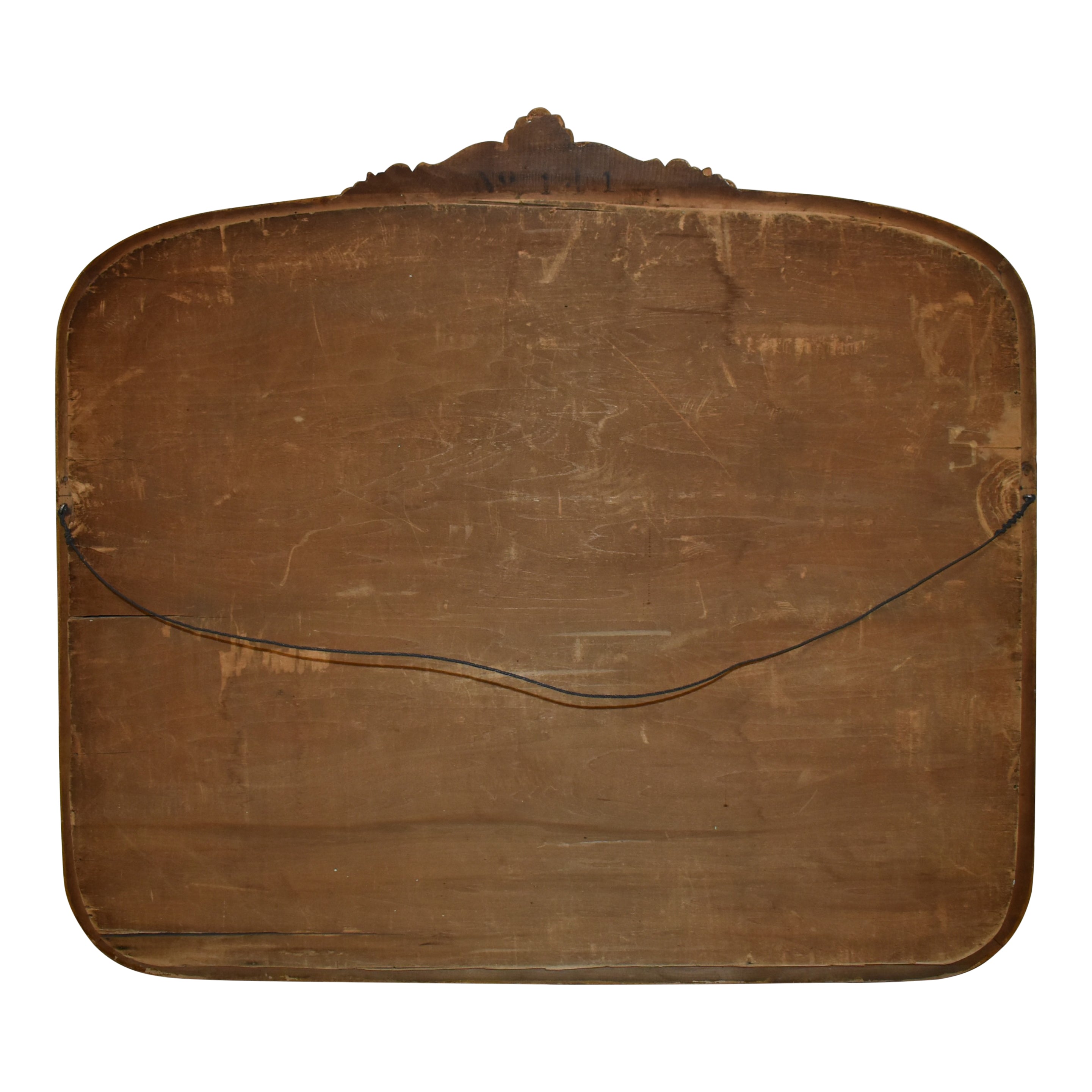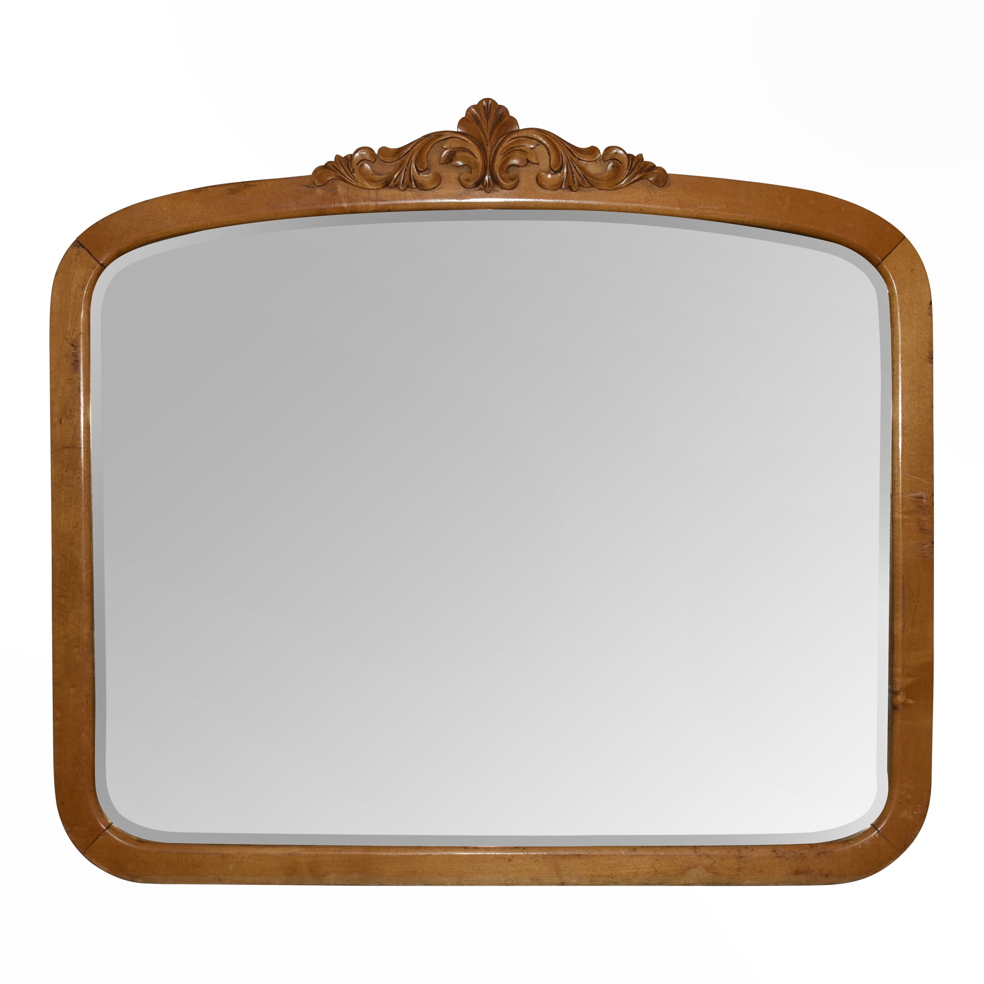This framed wall mirror combines expert craftsmanship with timeless design. It features beveled glass and rounded corners for a sleek finish. The frame showcases scrolled acanthus leaves with a central shell positioned at the top, adding a touch of elegance. Ideal for enhancing any room with a beautiful focal point that brightens and adds depth. Images of the glass have been edited to remove reflection with the exception of the last photo, which has been included to show the mirror's beveled edge.