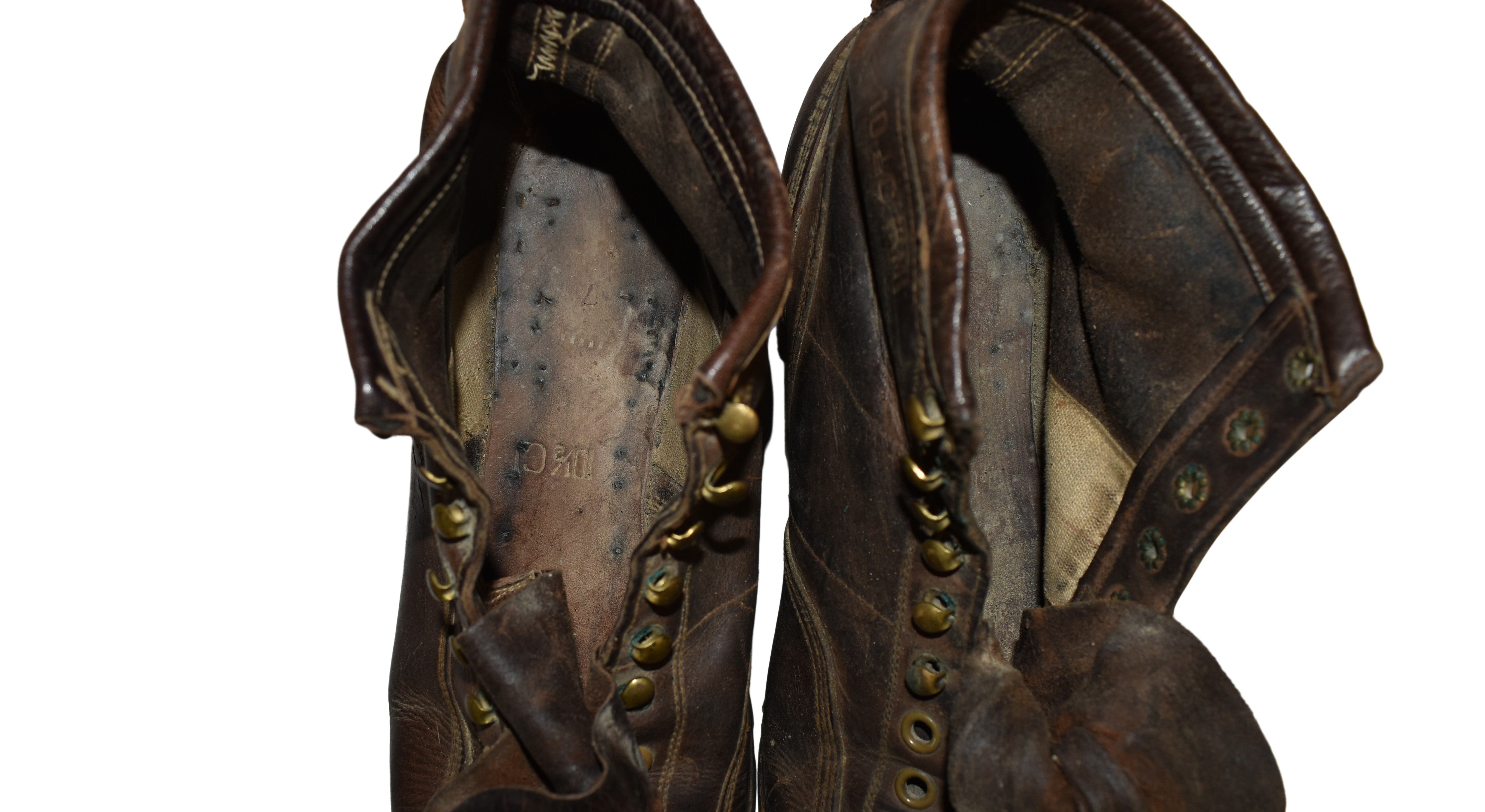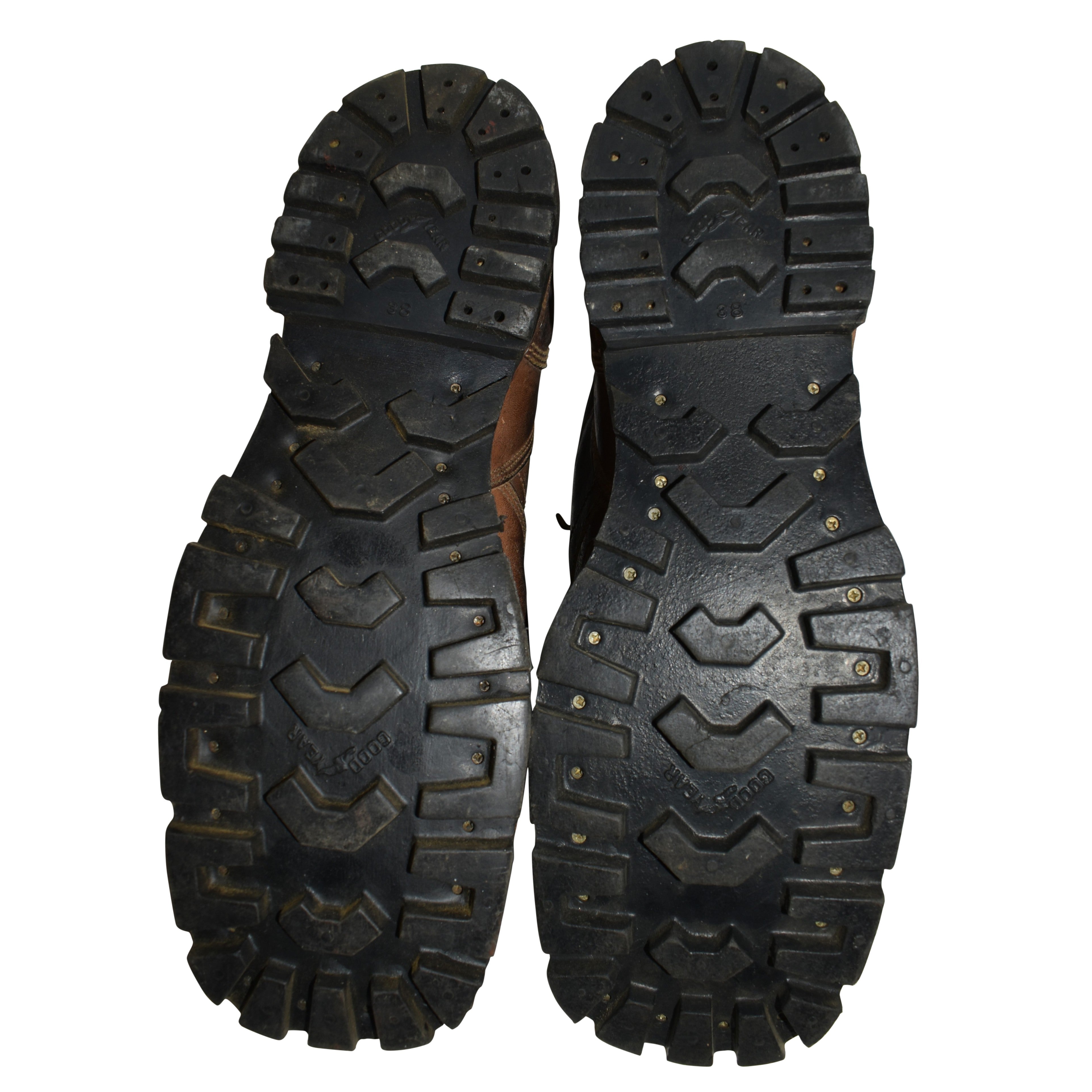 Not just a tire company, Goodyear began making rubber soles for shoes and boots in 1905. This vintage pair of throwbacks from the mid-century defy modern conventions with their distinctive square toe design, authentic leather construction, and thick Goodyear soles with impressive tread. A wonderful collection piece for the ski enthusiast!