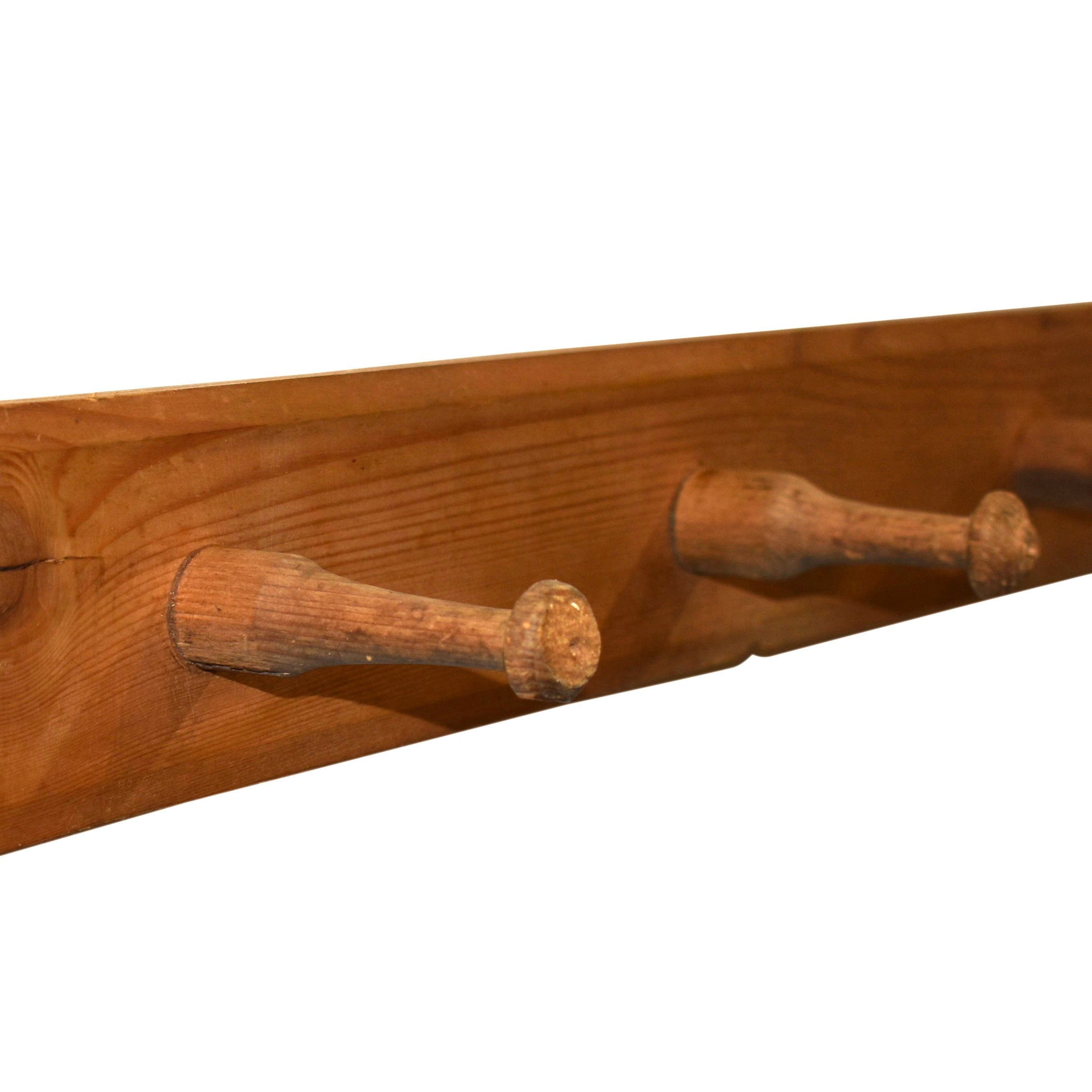 Featuring four strudy pegs, this vintage coat rack is a simple and practical solution to keeping outerwear and accessories organized. Crafted from durable pine, it adds a natural touch to any entryway or room while helping you maintain a clutter-free space. Two screw holes make the rack easy to mount on the wall.