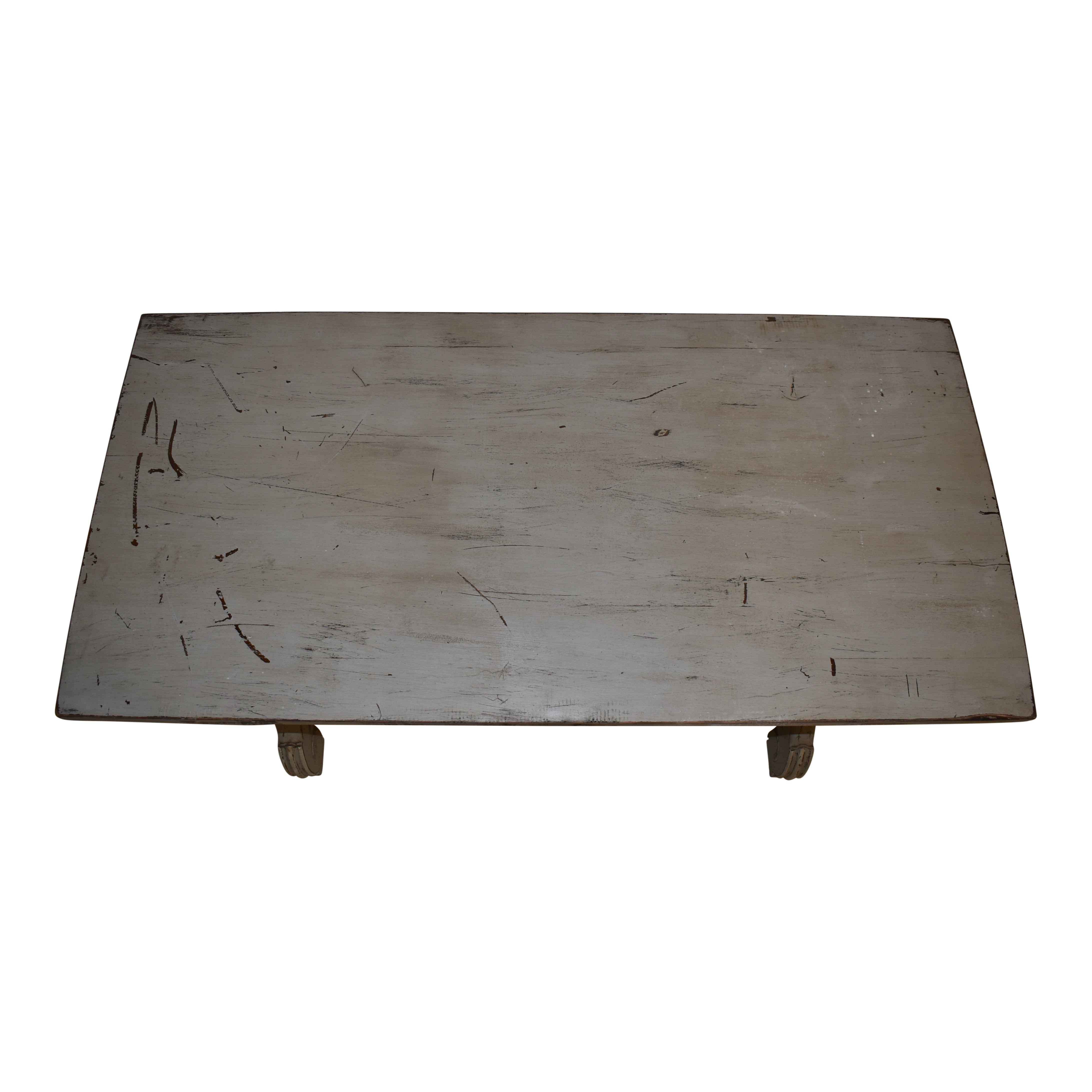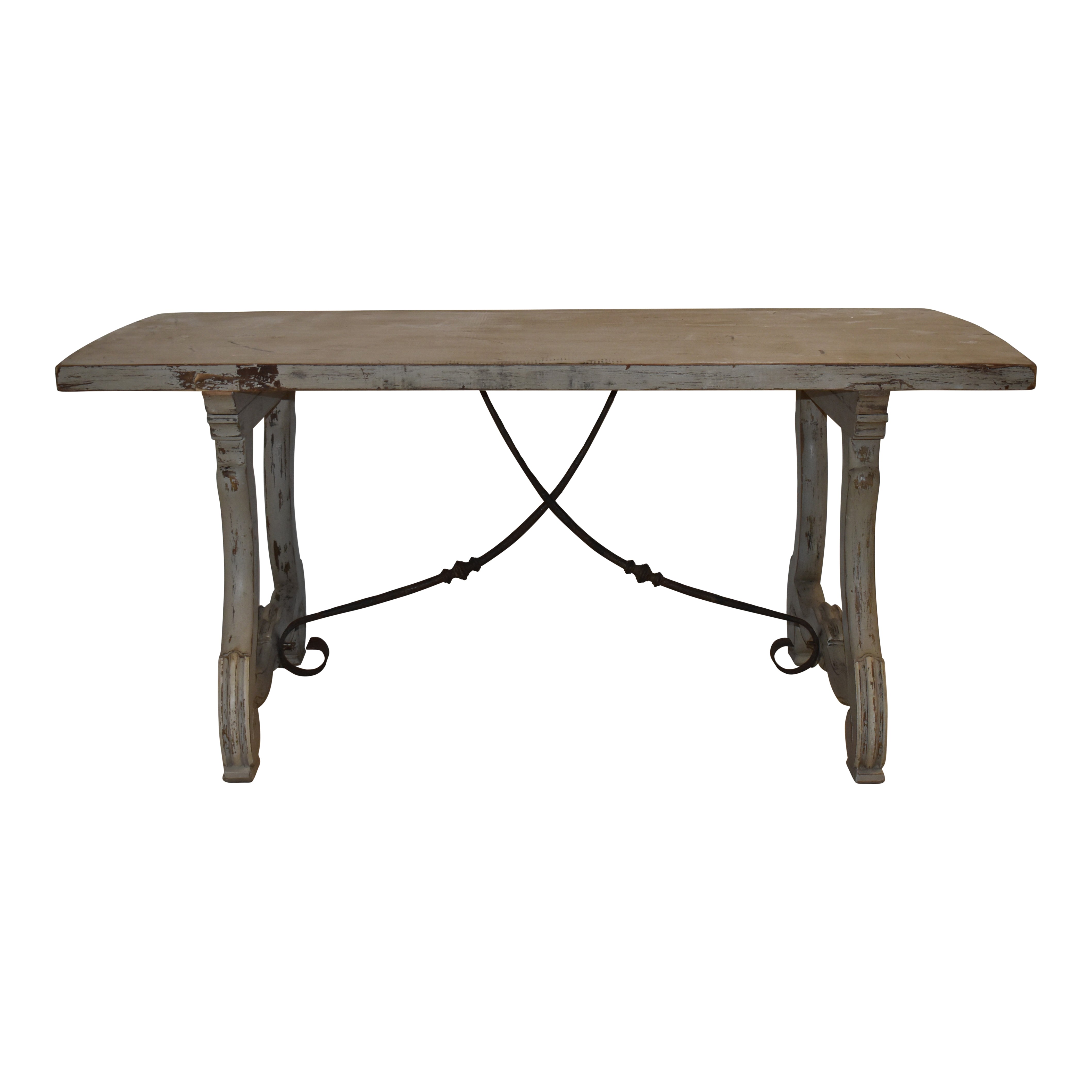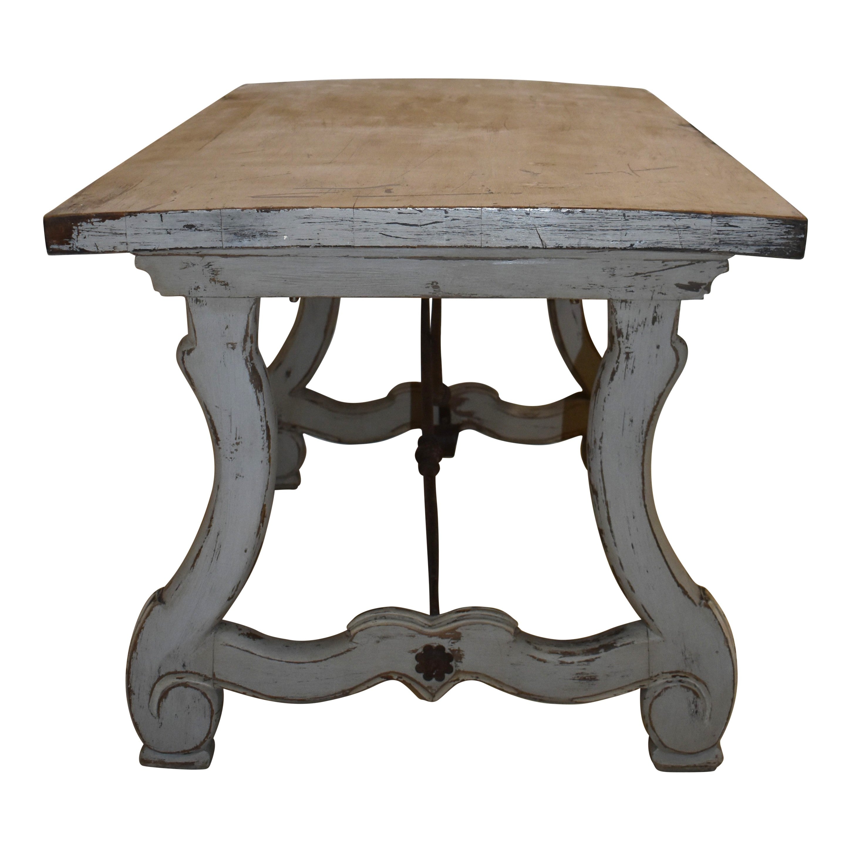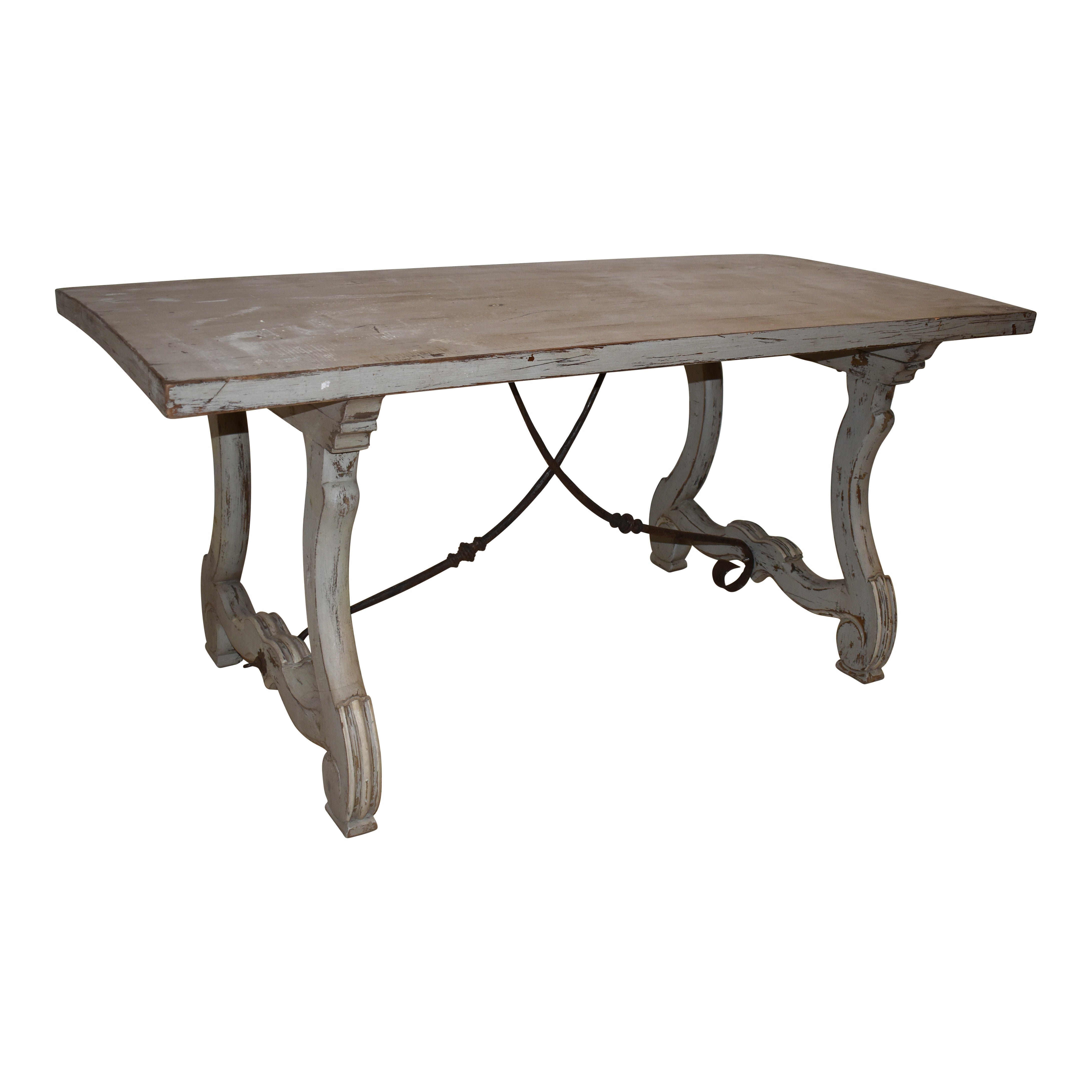 Enhance your dining area with this painted Spanish table. The table is crafted from solid wood and showcases scrolled iron work that unites the legs and table top. Durable and distinctive, it creates a welcoming space for shared meals and lasting memories.