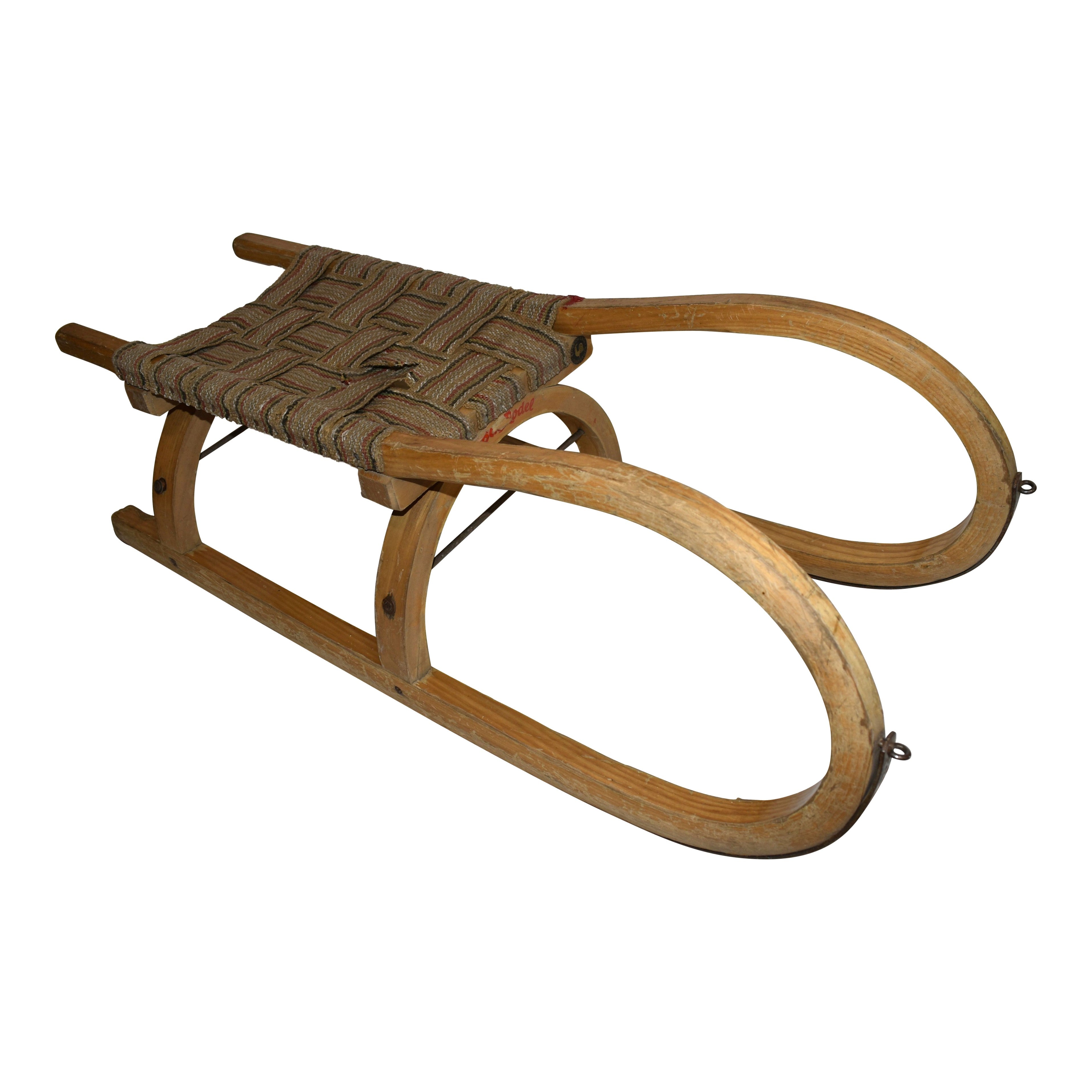 Bring home a piece of Alpine heritage with this authentic Köck-Rodel sled by Heinrich Engl. Expertly crafted in Austria, it pairs a dramatically curved wooden frame that commands attention with a woven seat that adds tactile authenticity. Constructed with solid wooden runners and fitted with metal glides, it represents the practical design standards of its era. Whether you're a thrill-seeking collector or transforming your space with statement-making antiques, this sled delivers undeniable character and heritage craftsmanship that refuses to fade into the background.