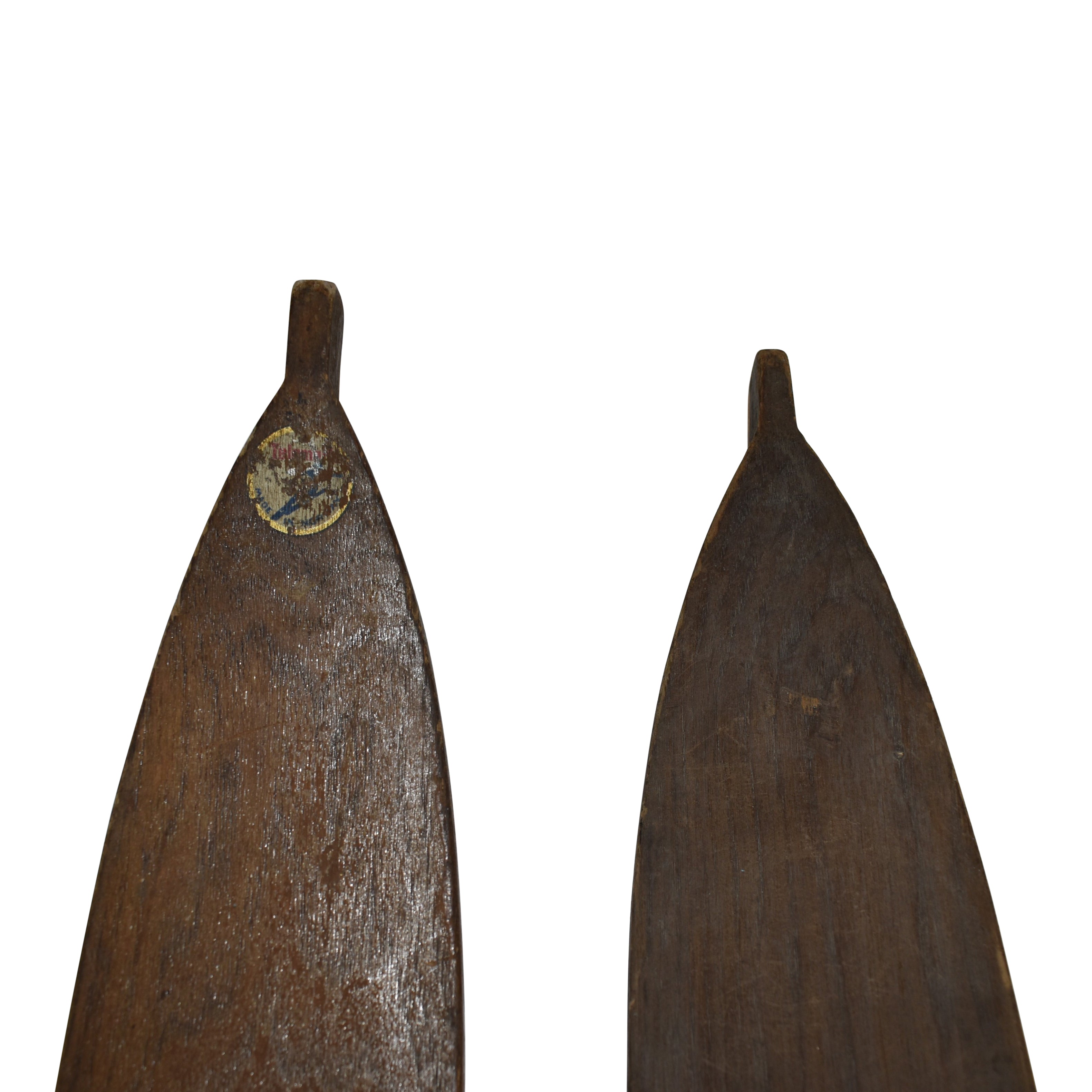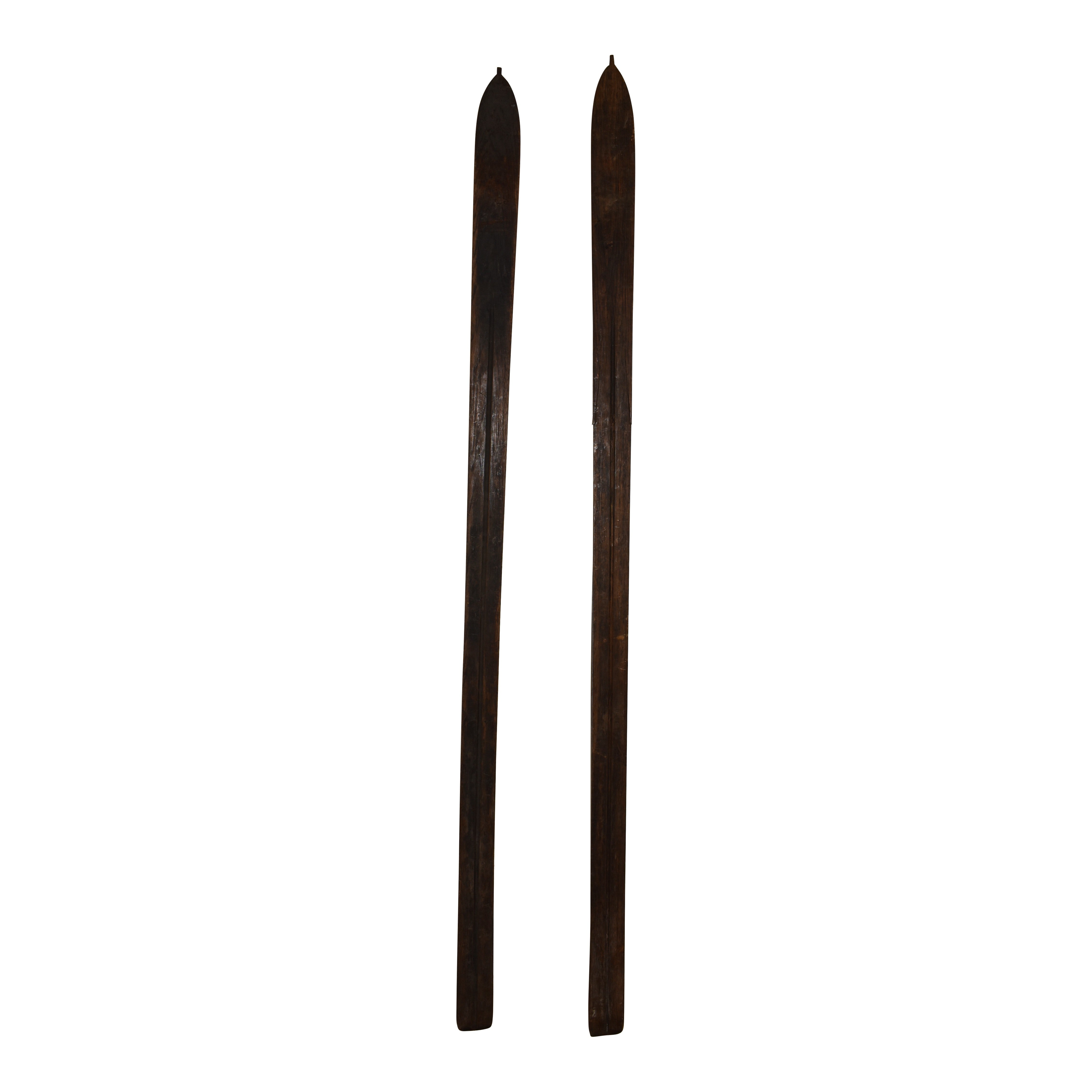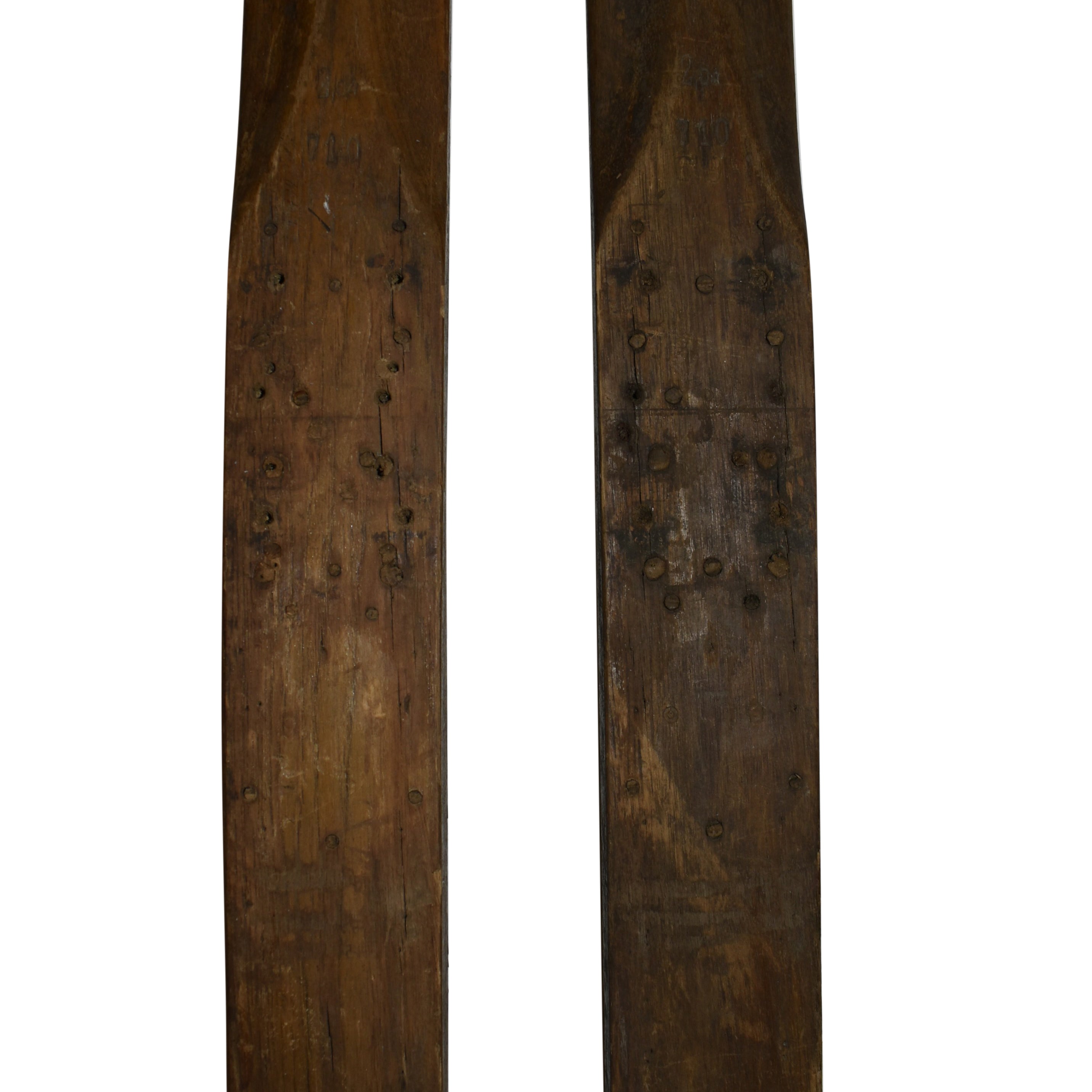 Condition: Consistent with age and use. The wood is separating on one ski.