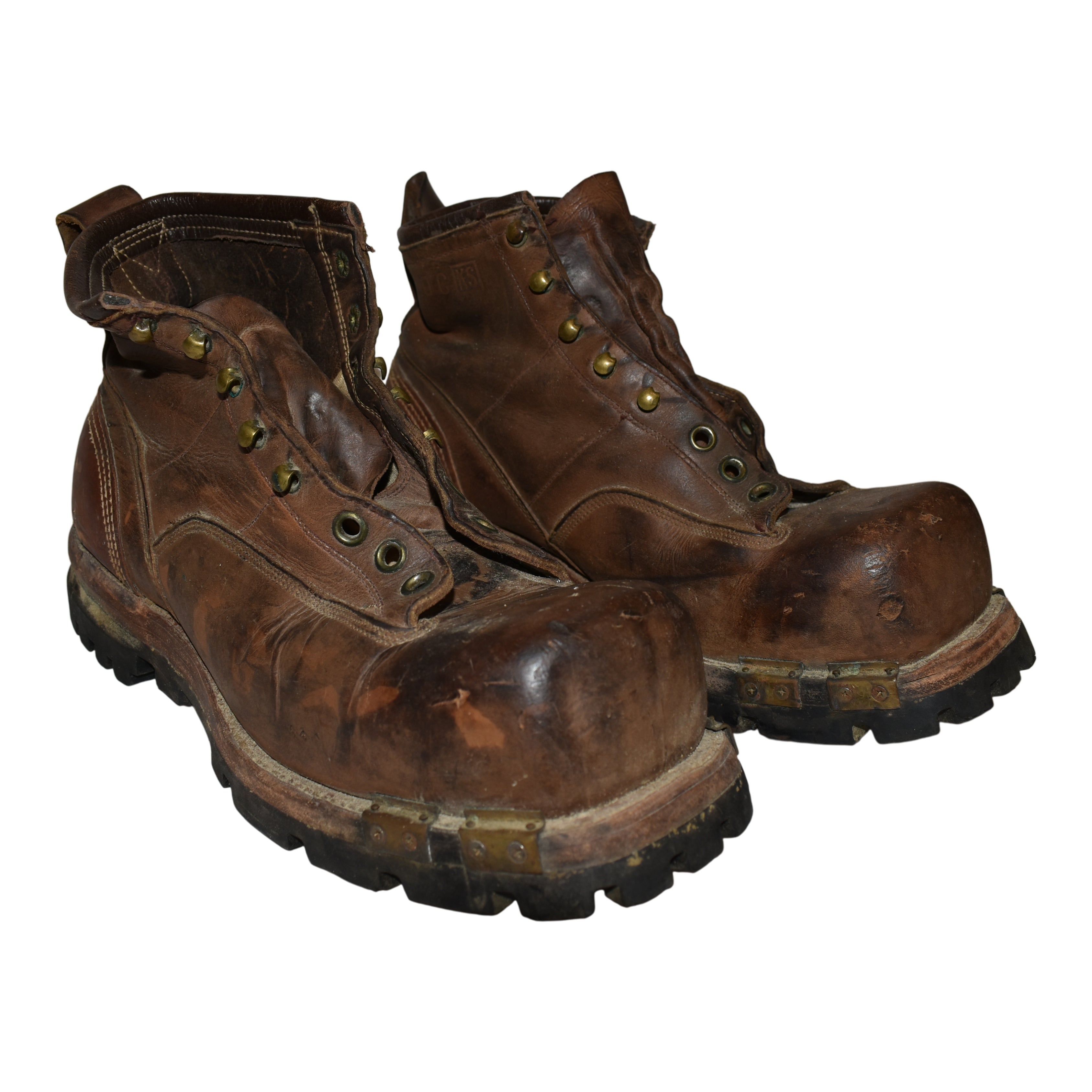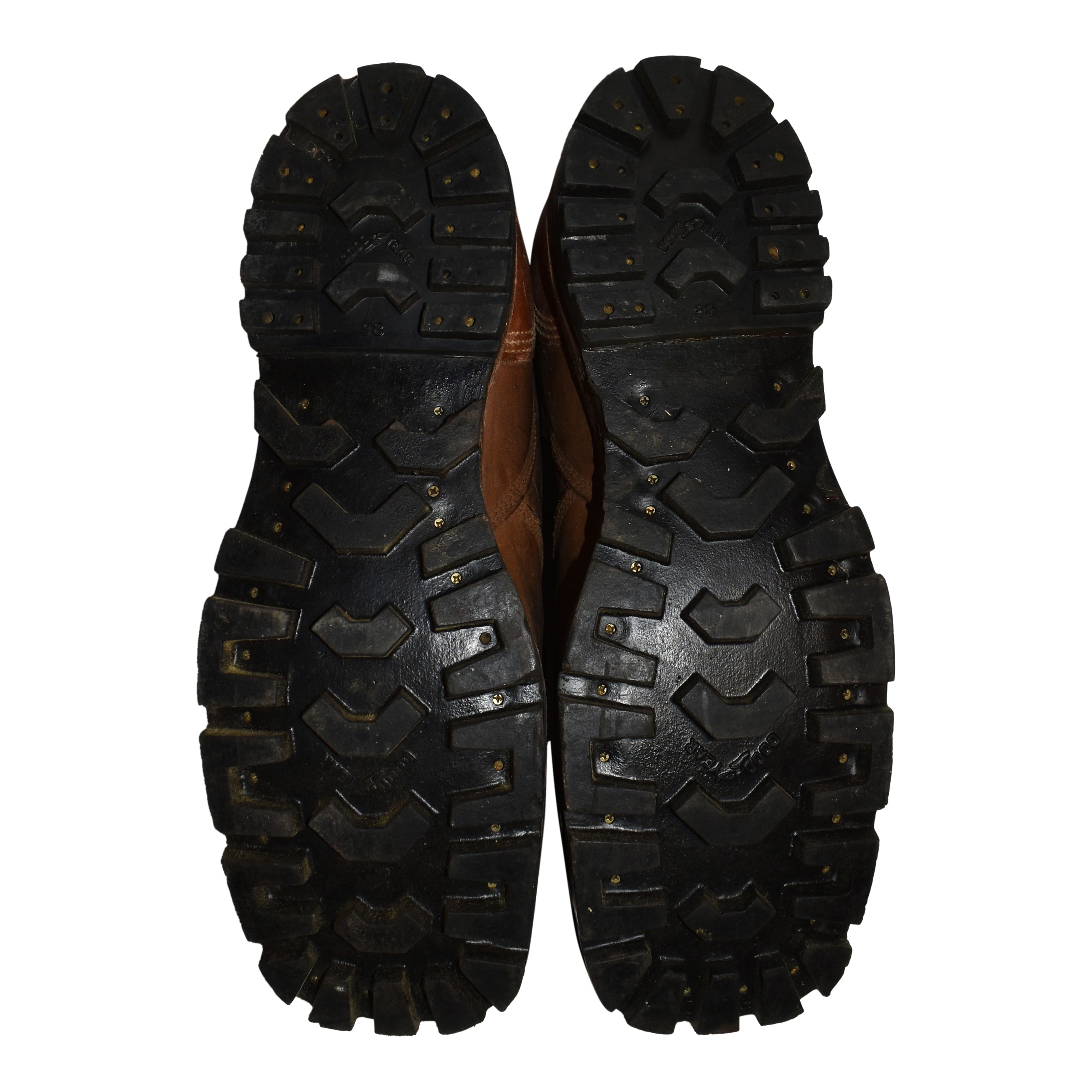 Not just a tire company, Goodyear began making rubber soles for shoes and boots in 1905. This vintage pair of throwbacks from the mid-century defy modern conventions with their distinctive square toe design, authentic leather construction, and thick Goodyear soles with impressive tread. A wonderful collection piece for the ski enthusiast!