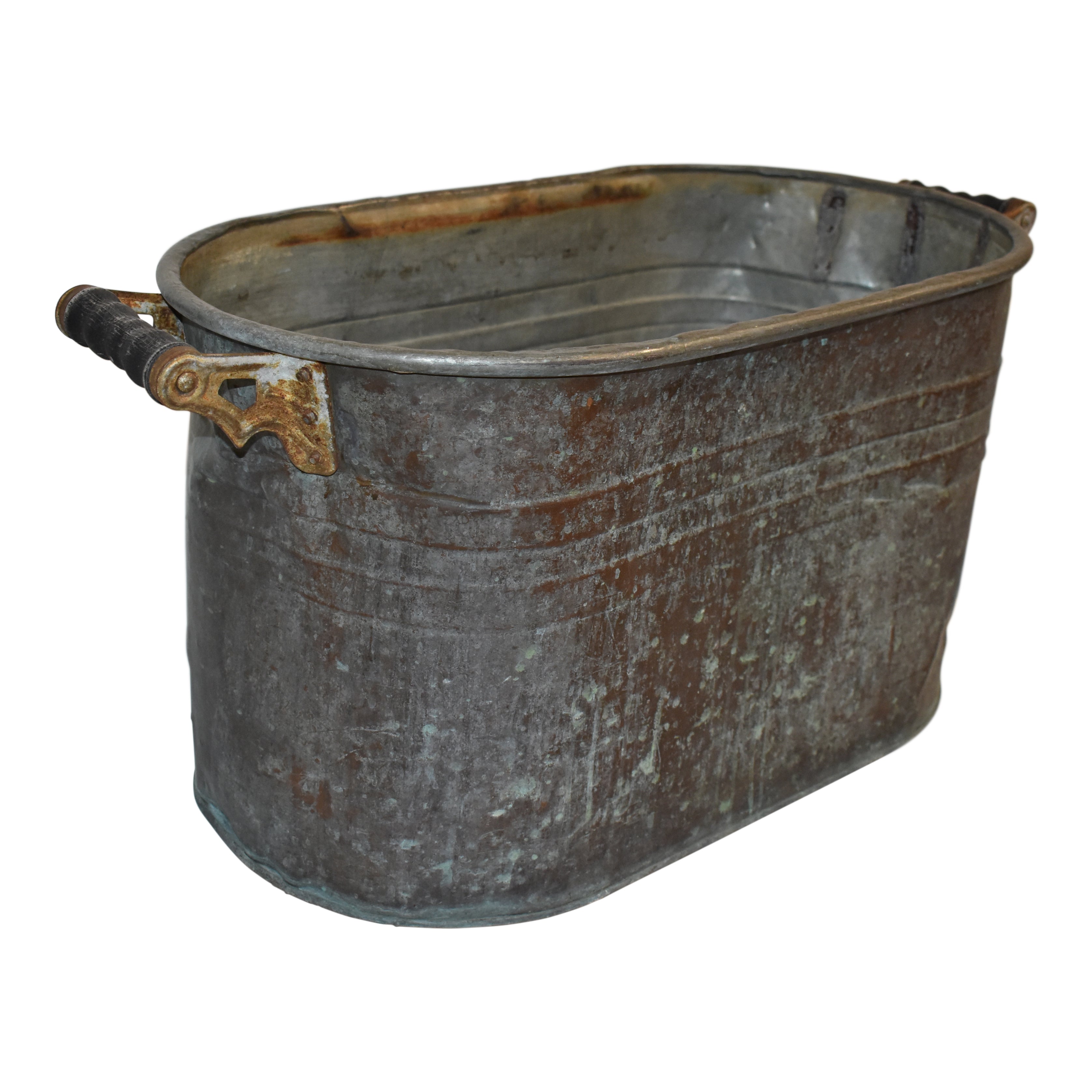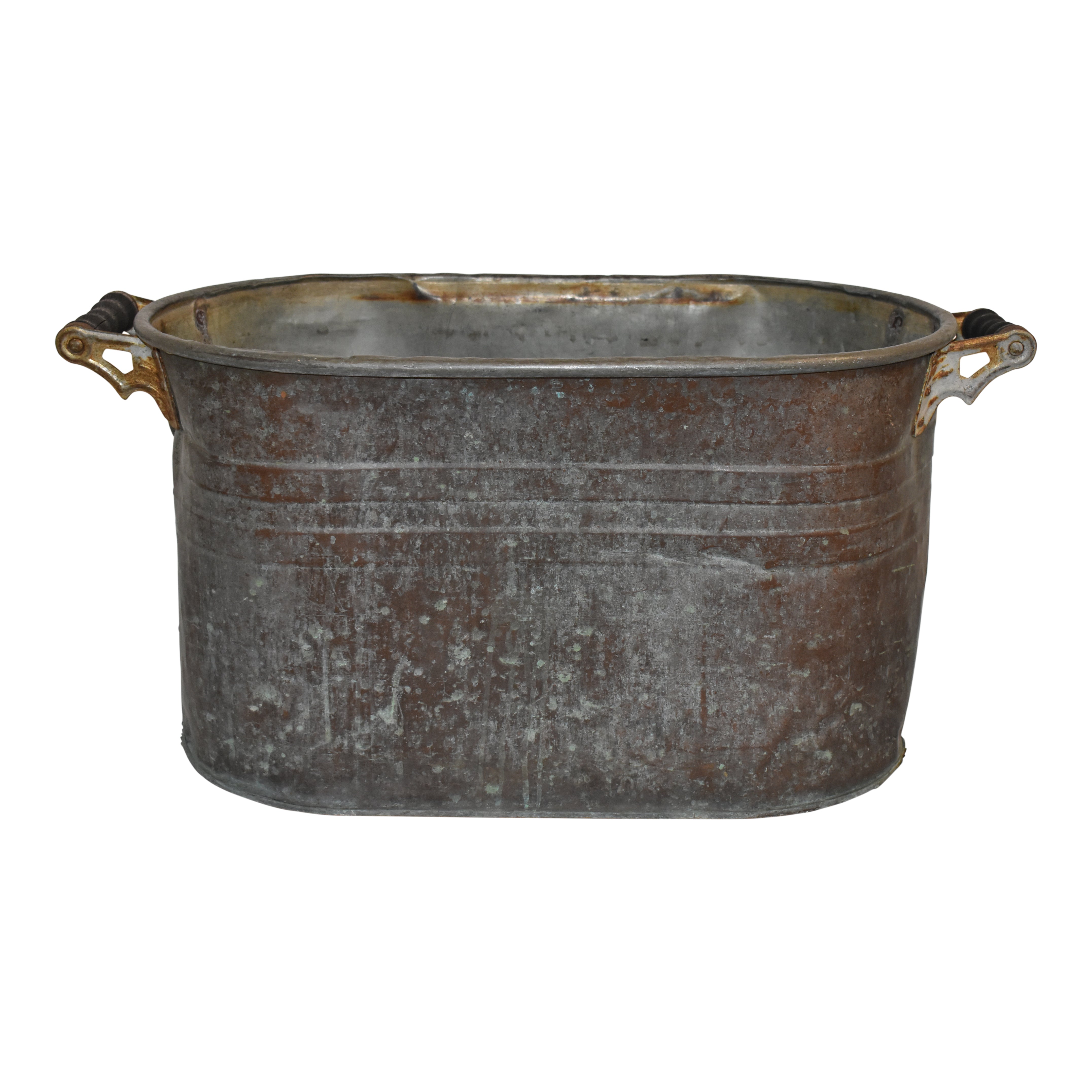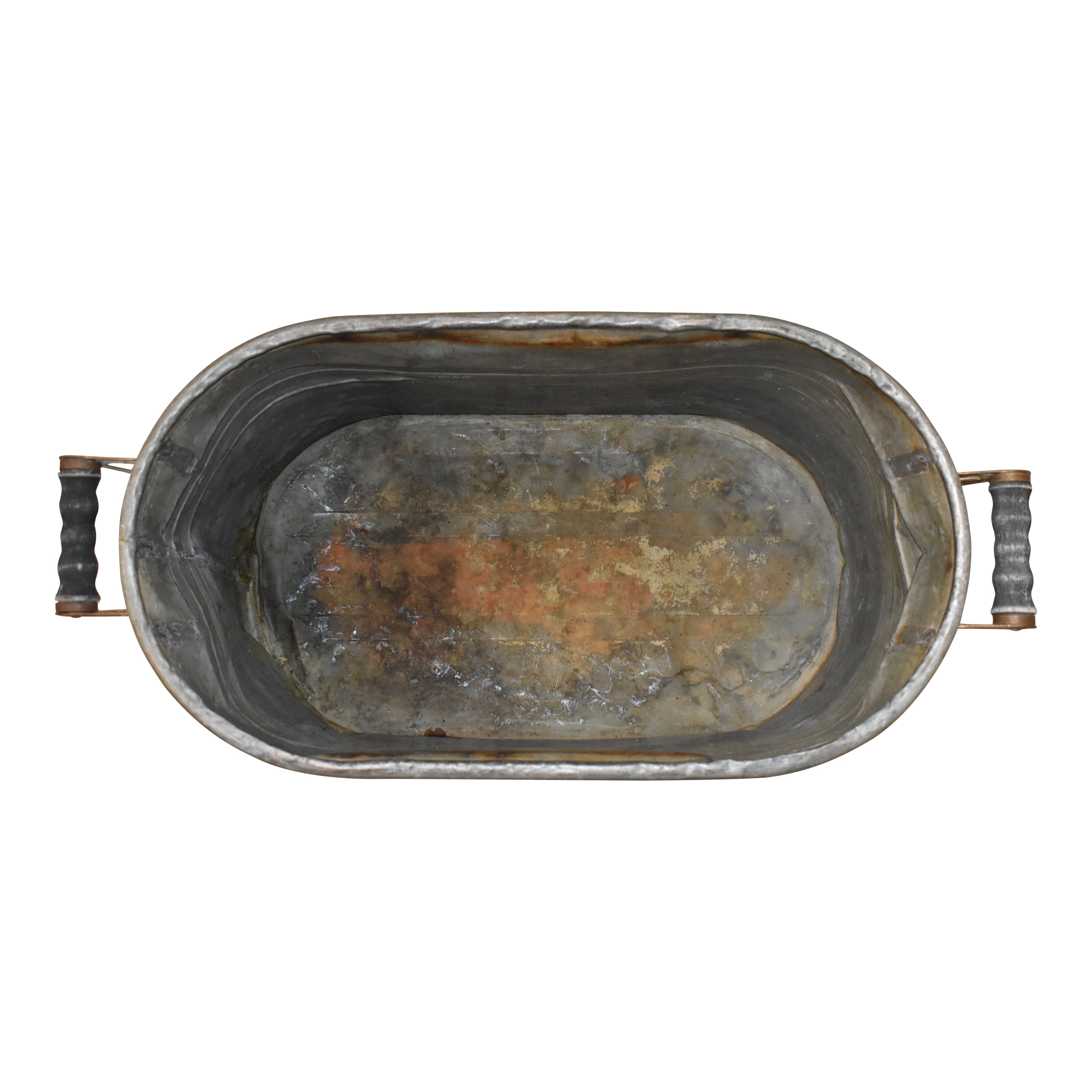 Bring rustic charm to your space with this delightfull metal container! Complete with sturdy wooden handles for easy carrying, it's perfect for displaying flowers, serving ice cold beverages, or adding a touch of timeless decor to any room.