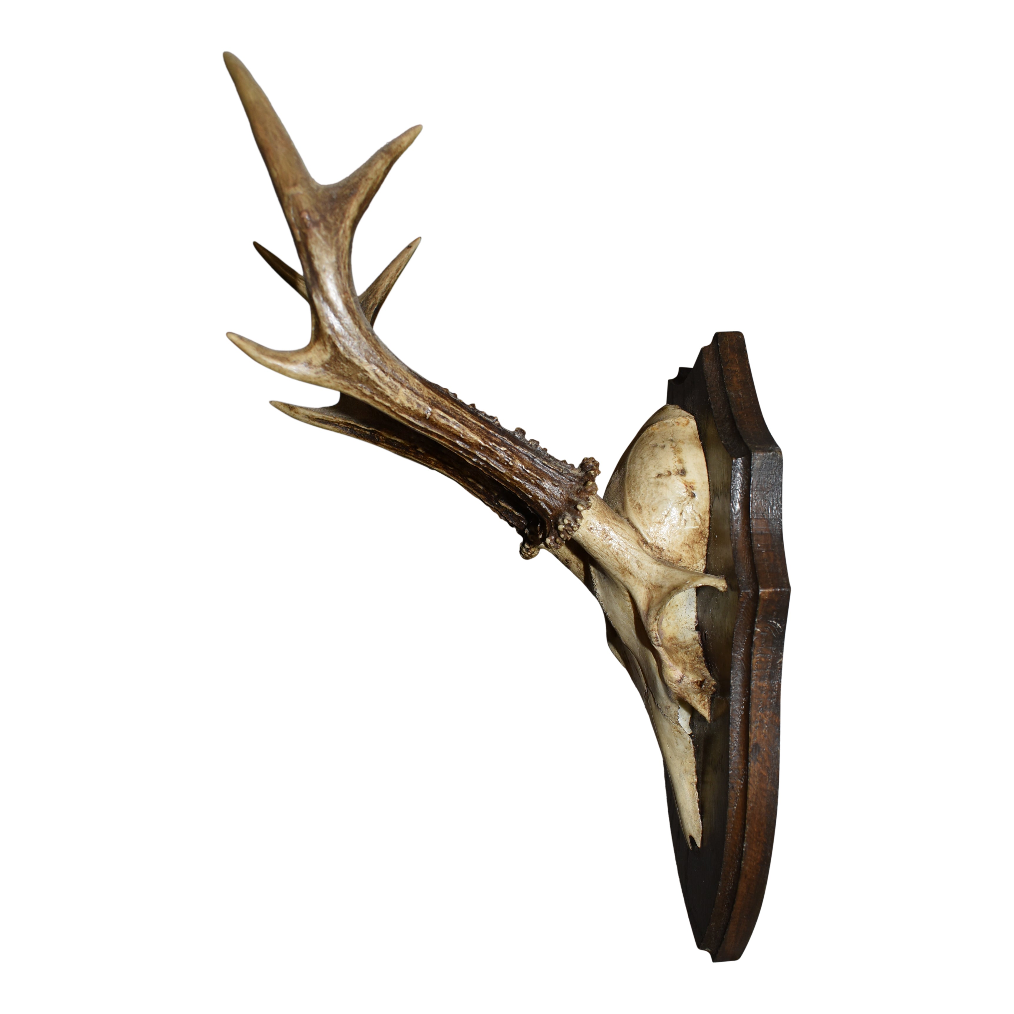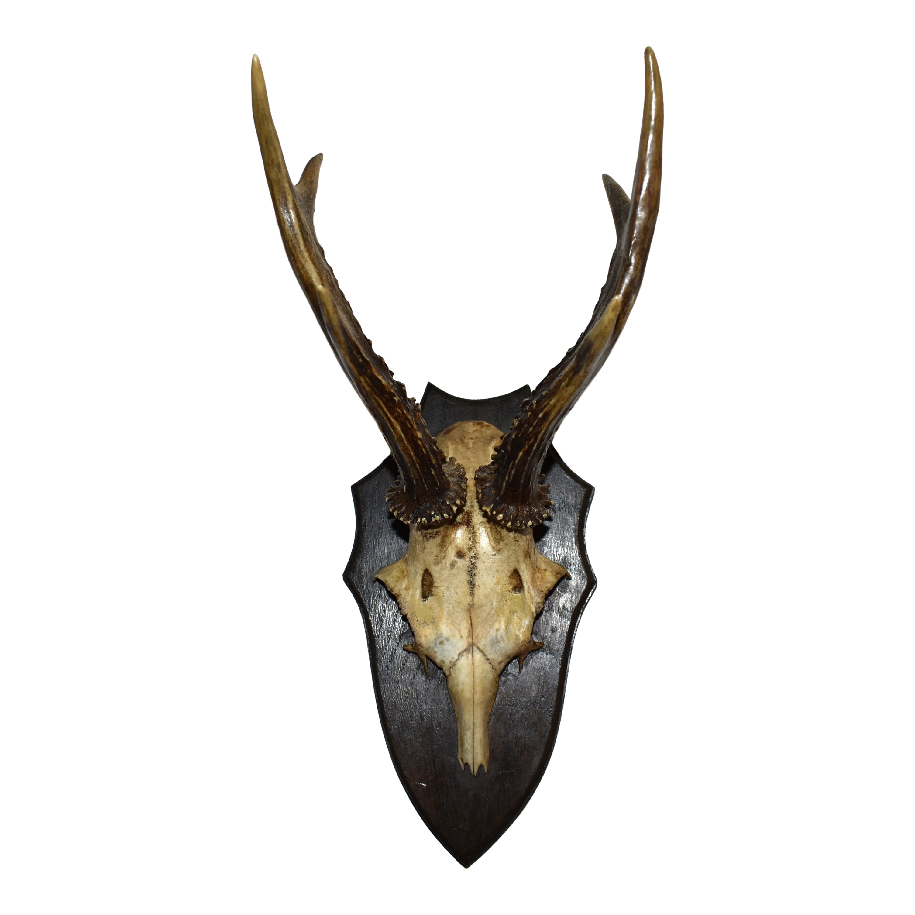 This roe deer (Capreolus capreolus) trophy was taken in Europe during the early 20th century. Mounted on a wooden plaque, the trophy includes antlers and part of the roe's skull. A bold statement piece for collectors who appreciate natural history and vintage sporting heritage. Perfect for adding dramatic character to a study, gallery, or adventurous interior space.