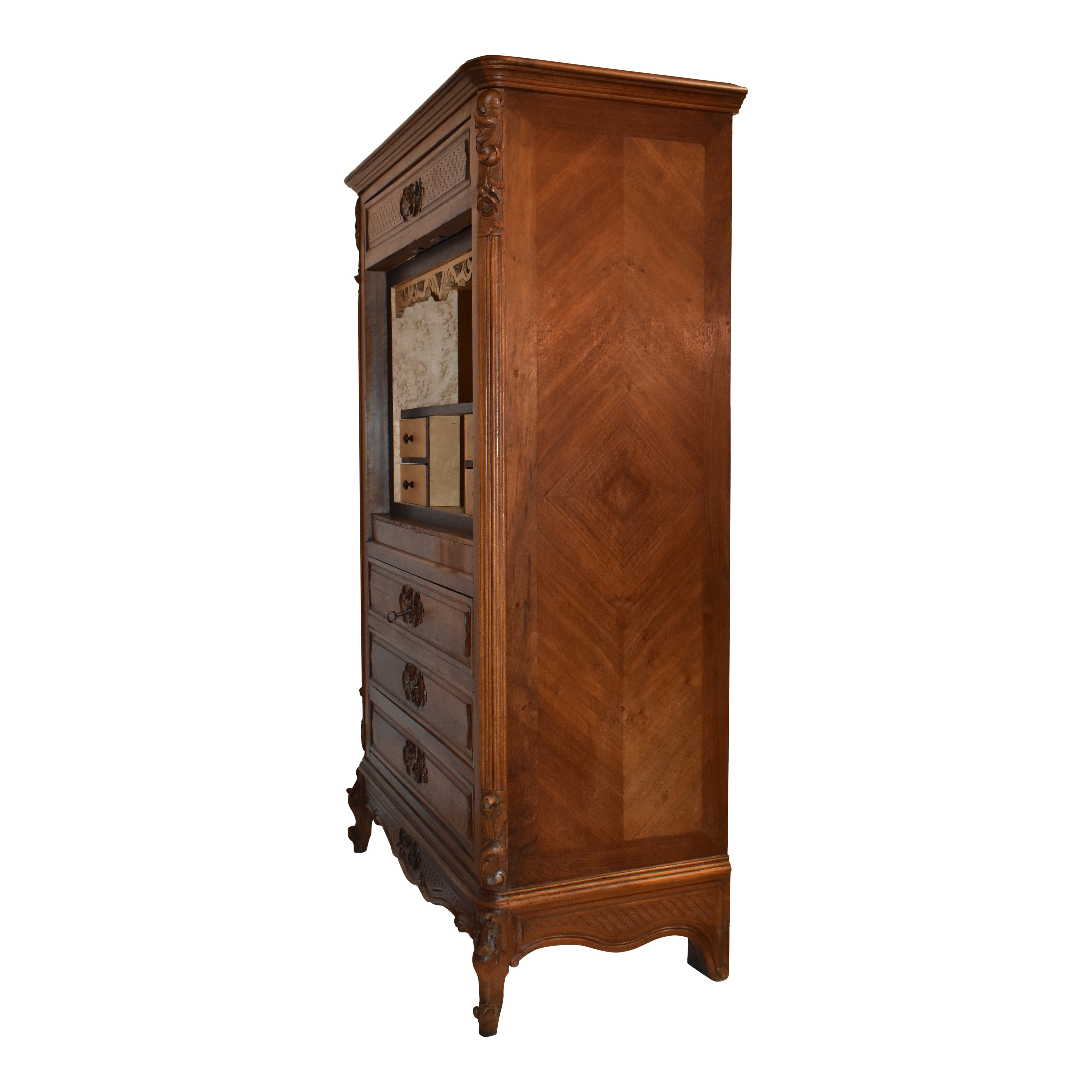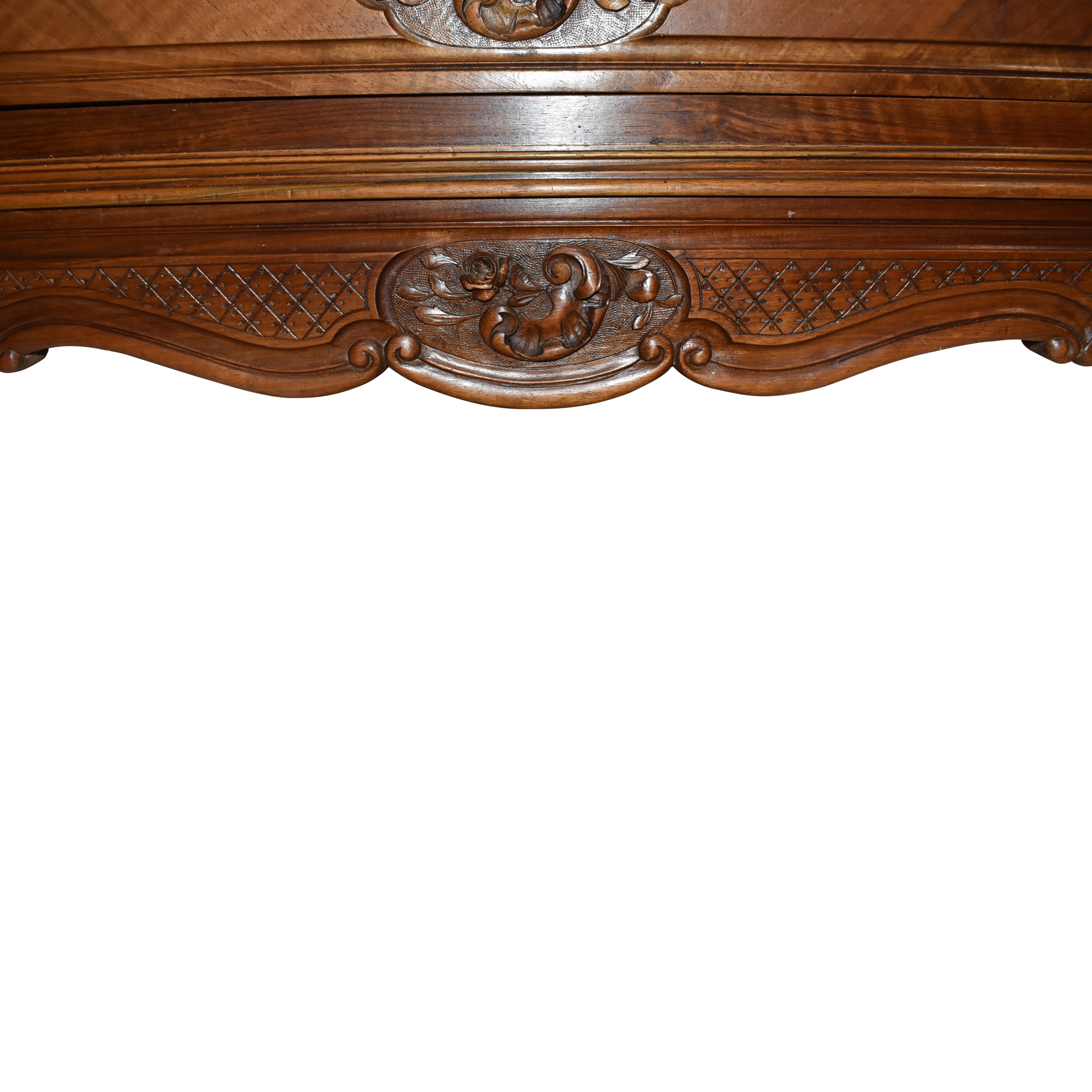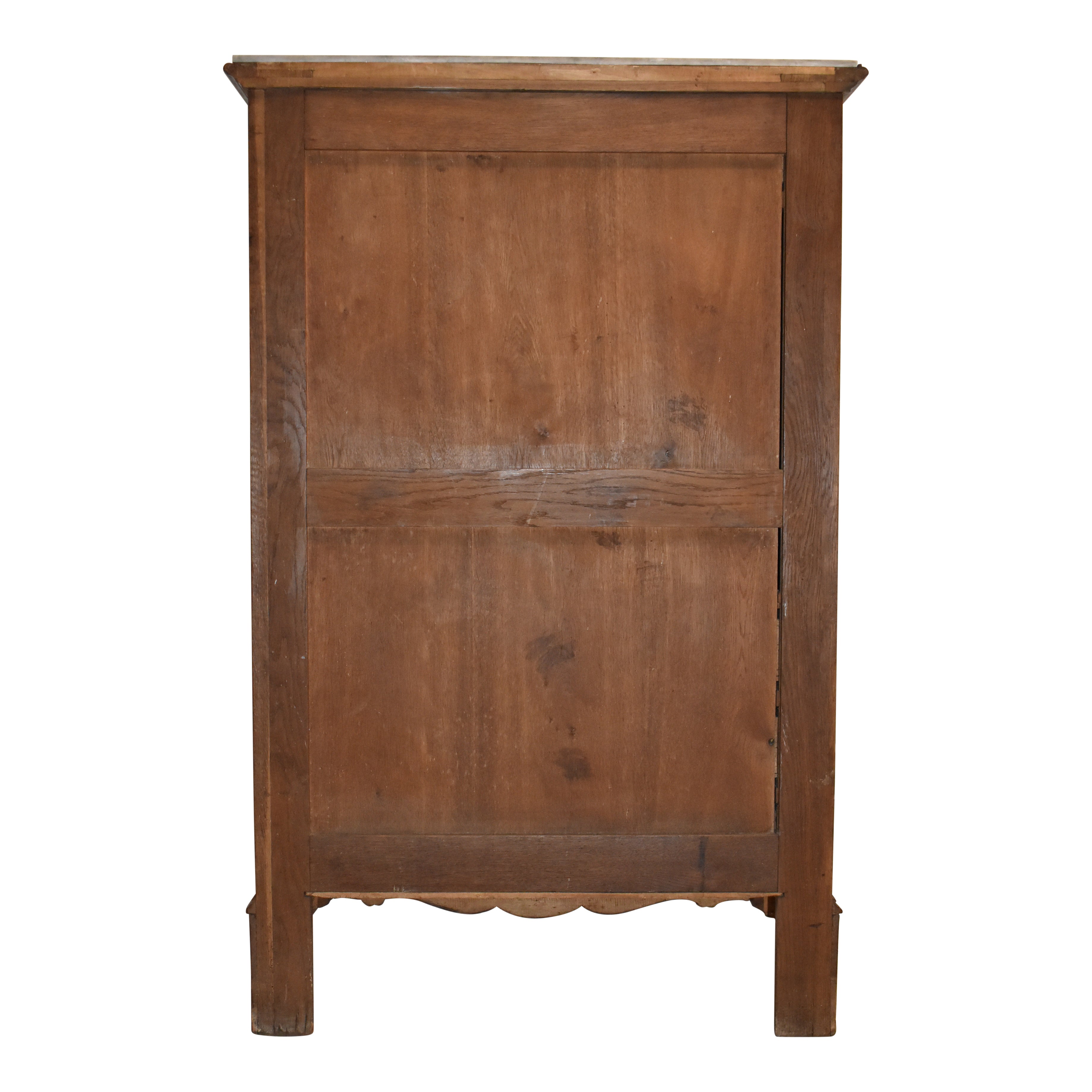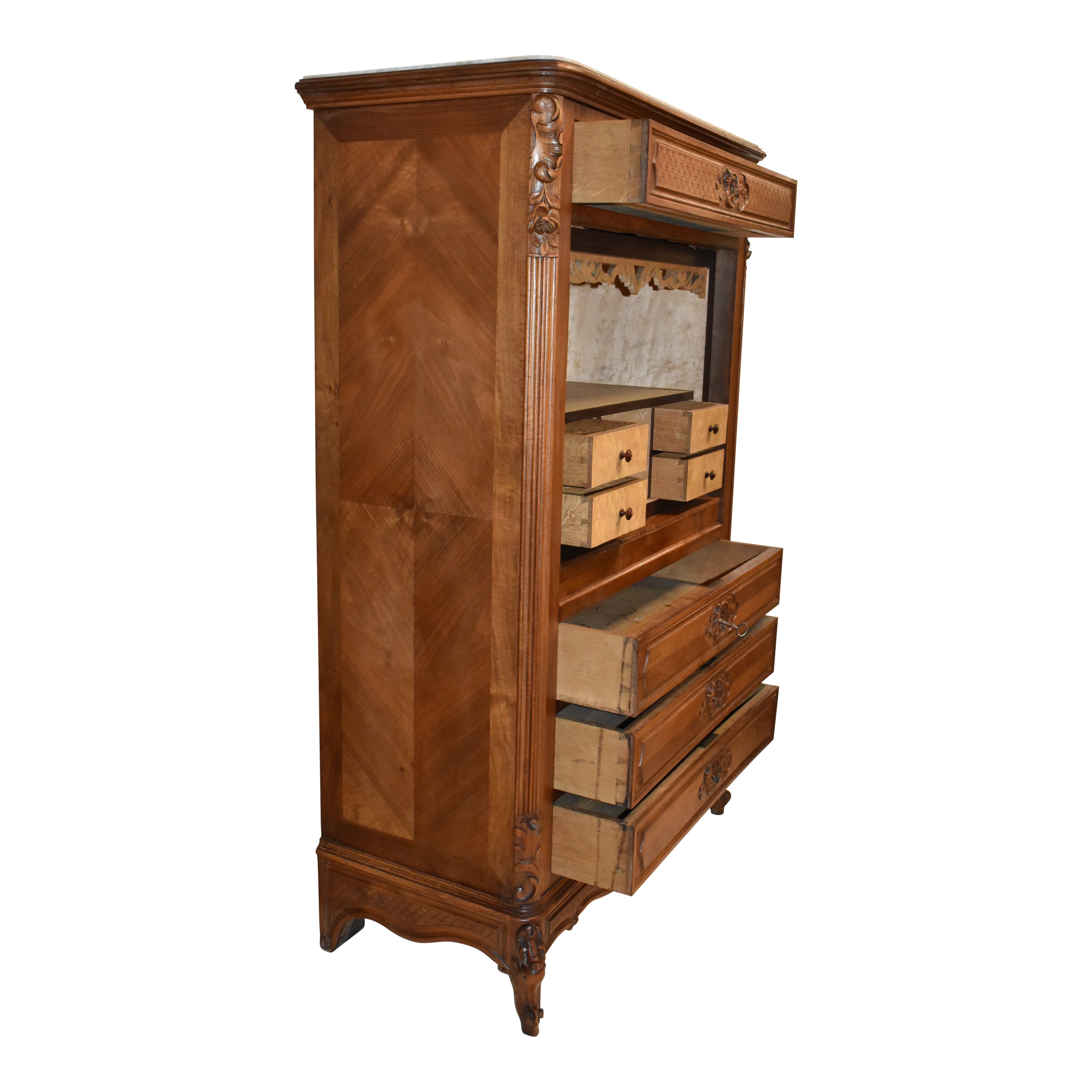 This elegant open-front cabinet showcases a rich walnut exterior paired with a light maple interior that beautifully contrasts for visual appeal. Featuring durable craftsmanship, the timeless charm of Louis XV style, and a smooth marble top, the cabinet's open front is perfect for displaying treasured items while adding a touch of classic sophistication to any room.