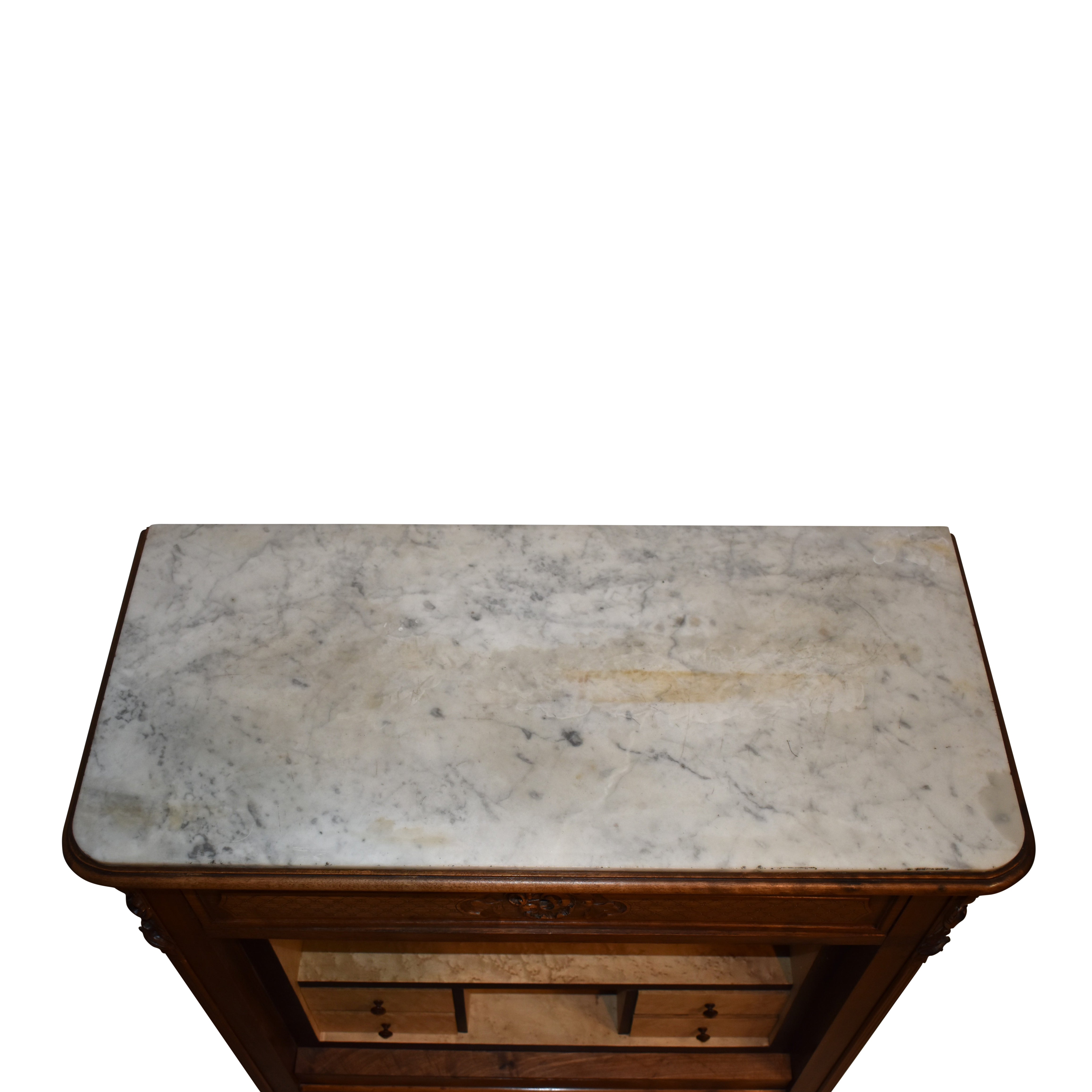Condition: Consistent with age and use. Marble is etched to lighten stain. Lock on the top drawer is broken.