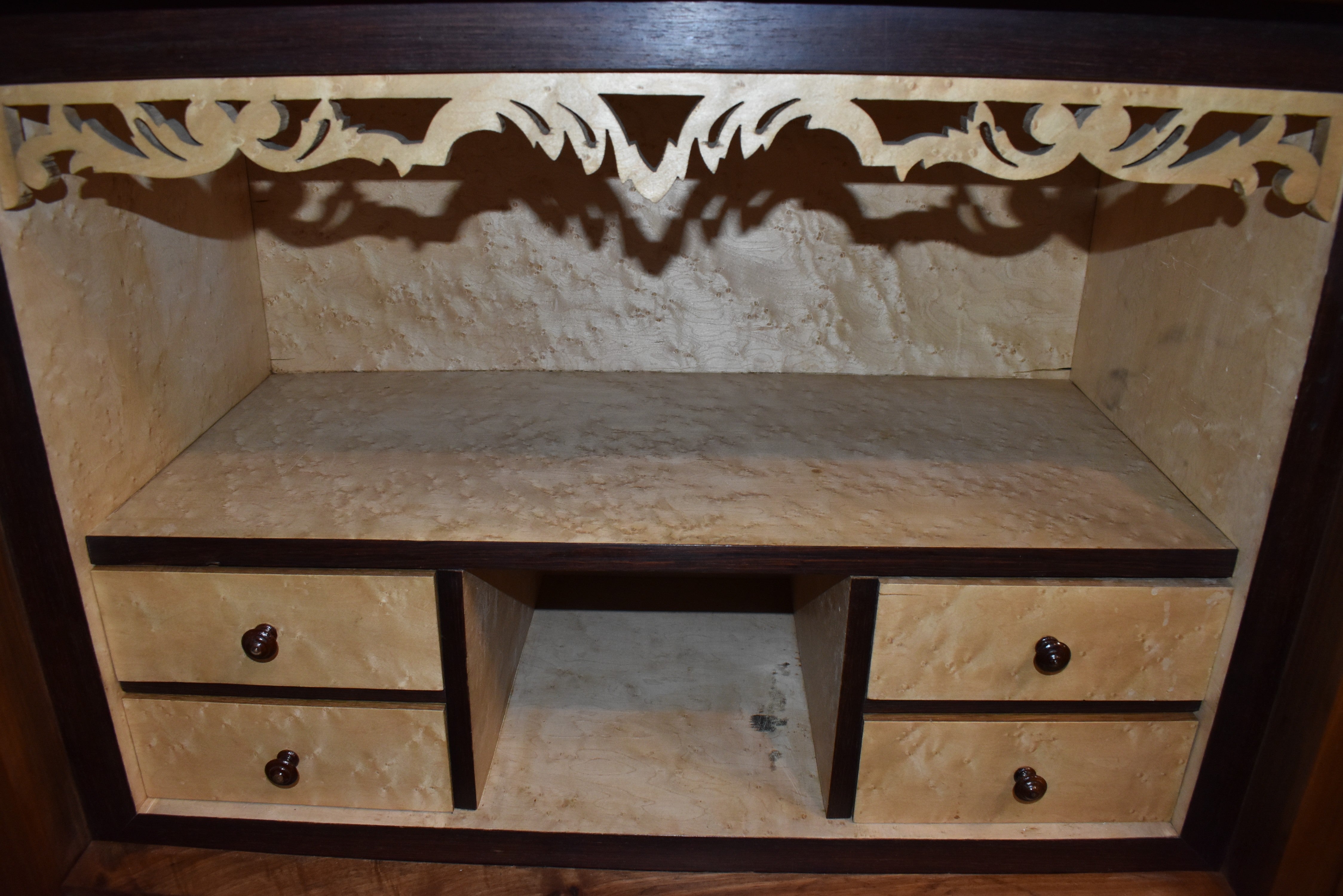 Once a secretary with a drop-down door that became a desk-top, this piece has been modified by removing the door.