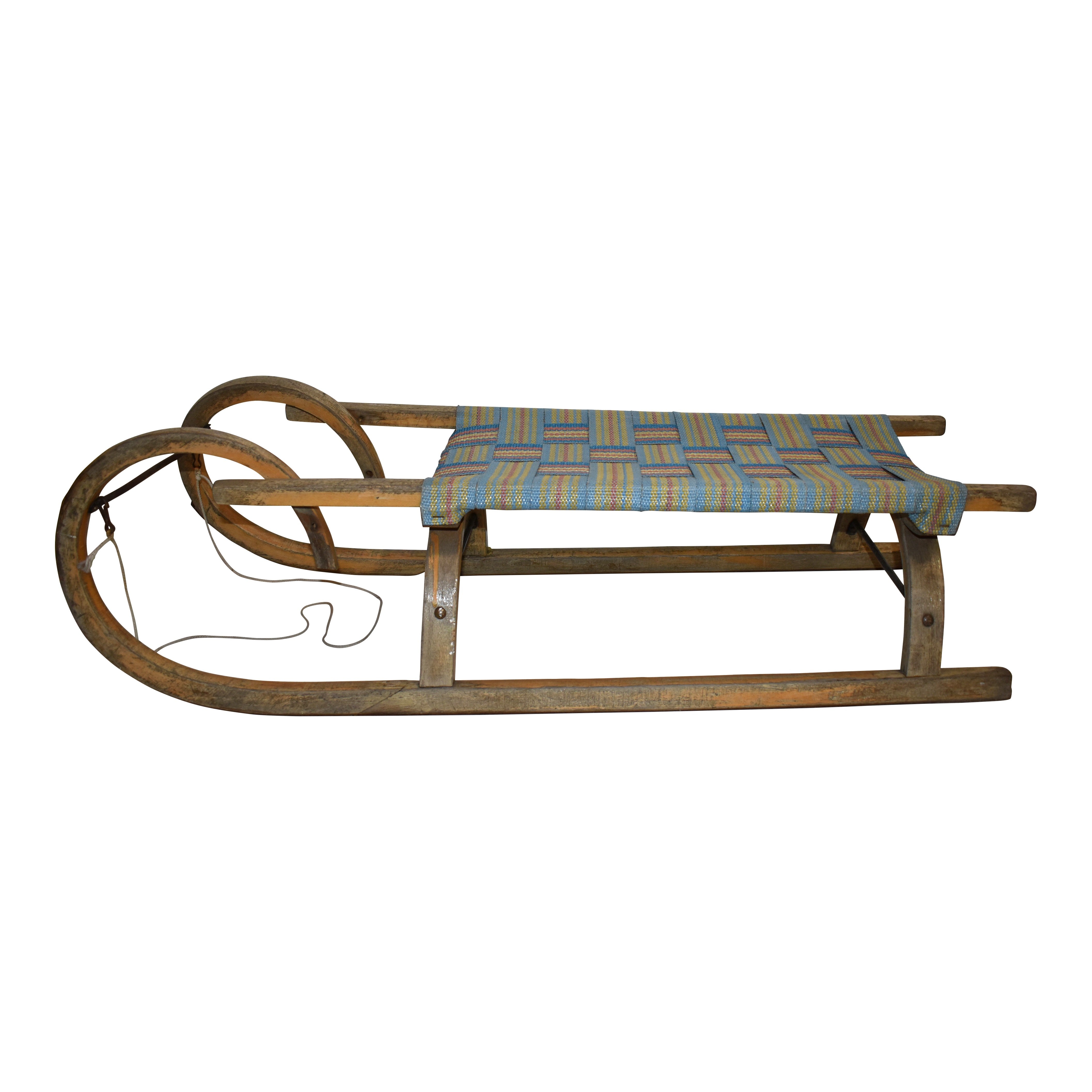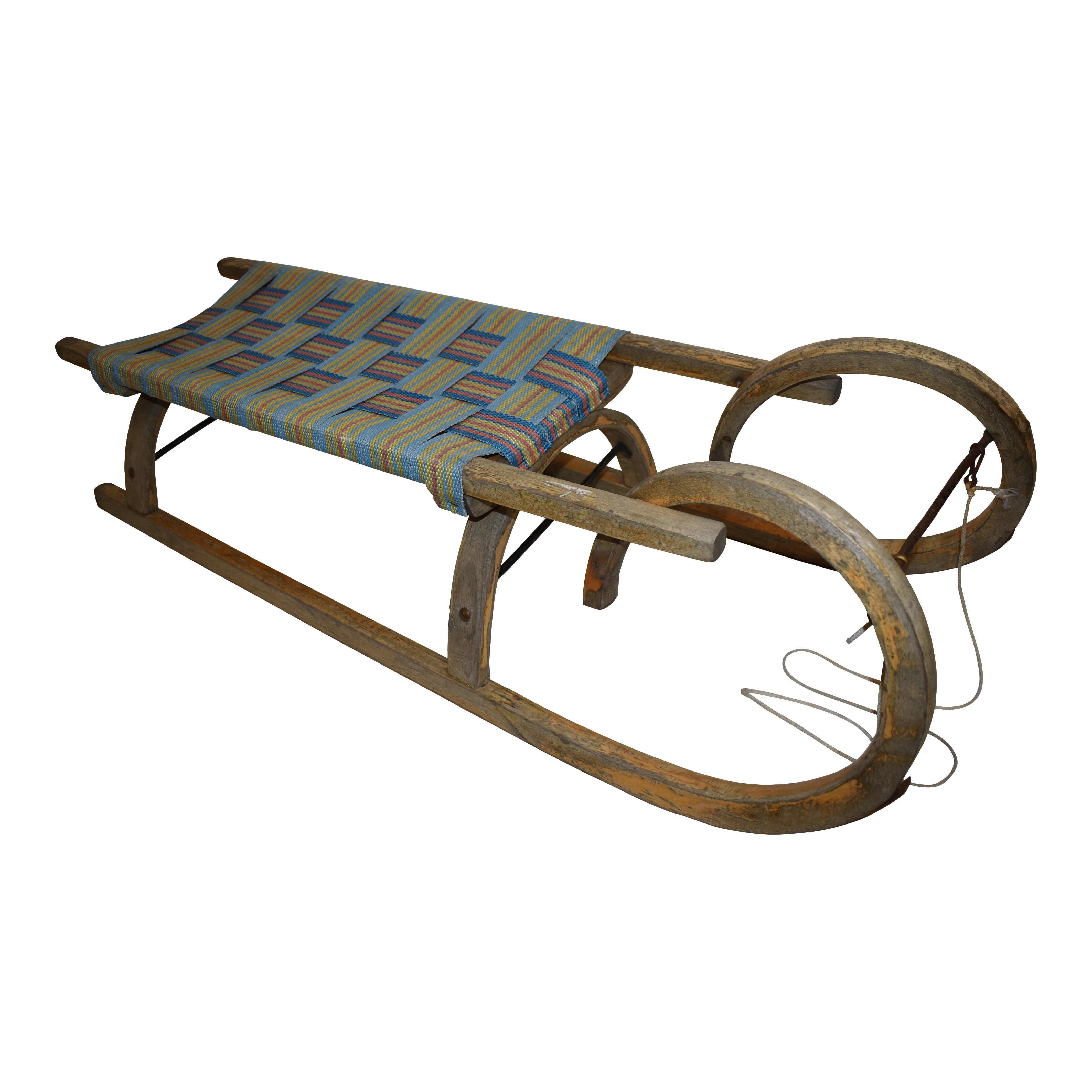 Bold, beautiful, and built to last—this bentwood ram's horn sled was made for adventure. The dramatically curved wooden frame commands attention, while the woven seat adds tactile authenticity. Constructed with solid wooden runners and fitted with metal glides, it represents the practical design standards of its era. Whether you're a thrill-seeking collector or transforming your space with statement-making antiques, this sled delivers undeniable character and heritage craftsmanship that refuses to fade into the background.